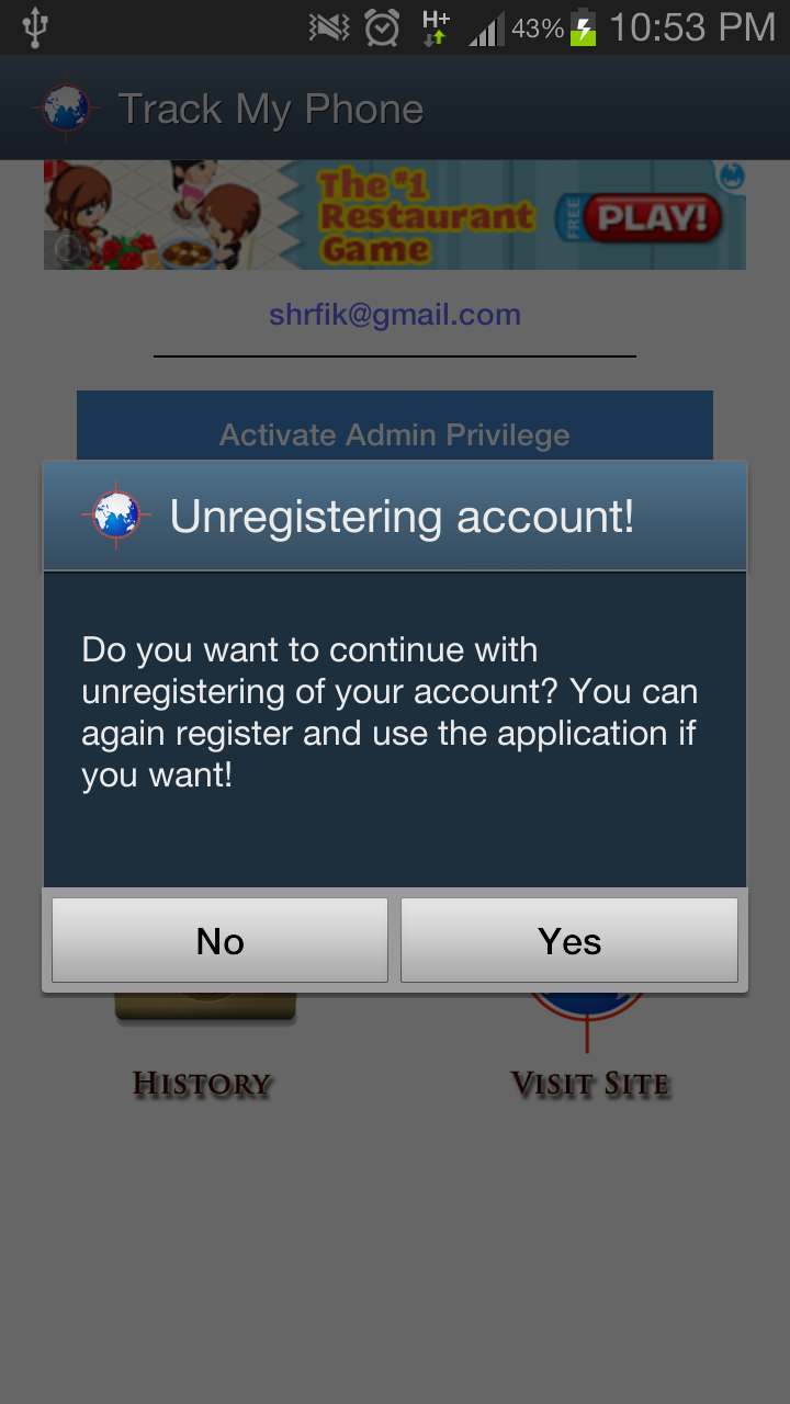 Track My Phone application helps you control and operate your mobile remotely. You can get the location of your mobile, make the siren play loud, send a message to your mobile, call a number, make it vibrate for 5 sec, and even take pic remotely and email pics to your email ID. All this you can do even when your mobile is not with you. *** Kindly note that to Uninstall the app you need to deactivate admin privileges that you have provided to the app. To do that, you need to open the app and click on deactivate button and then uninstall *** All you need to do is follow these steps 1. Install the app in your mobile 2. Register by providing an email ID and PIN (no spam mails guaranteed). 3. Log in at http://trackmyphones.com/tmp (tmp for Track My Phone) providing the same email ID and PIN That's it. Your mobile is now ready to be tracked remotely. All the features are totally free for eternity. What all things you can do remotely using this app? 1. Vibrate - vibrates your mobile for 5 seconds 2. Ring Loud - even when the volume of the mobile is low, a siren will be played with full volume 3. Show message - displays a message text composed by you on the screen 4. Call - calls the number from the mobile 5. Get Location - gets the current location of the device and displays it using Google Maps 6. Take pic from front/back camera. The pic will be emailed to your registered email address. 7. Lock your device. This needs admin privileges. 8. Change PIN of your device. This also needs admin privileges. Wonder how these features are useful? 1. Imagine you forgot where you have kept your phone. In the bathroom? Kitchen? Just log into our website and click on the "Ring Loud" button. A siren will go off and you will know where exactly your phone is. 2. Worried when you lose your cell? Just log in to the site and make a call to another number. Answer that another number and you can listen to whatever the thief is speaking. Or just get the location of the device and you can keep track of your mobile. And when you are close the place, just play "Ring Loud" 3. Want to know where your kids are? Just install this app in your child's phone and you can get the location info instantly. Use of Device Administrator (BIND_DEVICE_ADMIN permission) If you enable device administrator privilege for the app, the app will be able to perform the following functions which is not possible without the device administrator privilege for the app 1. Change PIN of the device by issuing a command remotely 2. Lock the device instantly You can enable/disable device admin privilege for the app any time from within the app. The option to enable/disable device admin privilege is provided in the main view of the app itself. As usual a notification will be displayed while doing any operation in the background Compliance with Google Policy: In order to be complaint with Google Policy, whenever a command is sent from the website to the mobile, a notification will be displayed in the notification bar of the mobile. This notification cannot be disabled. Also, the ads are now child targeted. The permissions used are for making the above feature (apart from ads) work. Not for anything else.