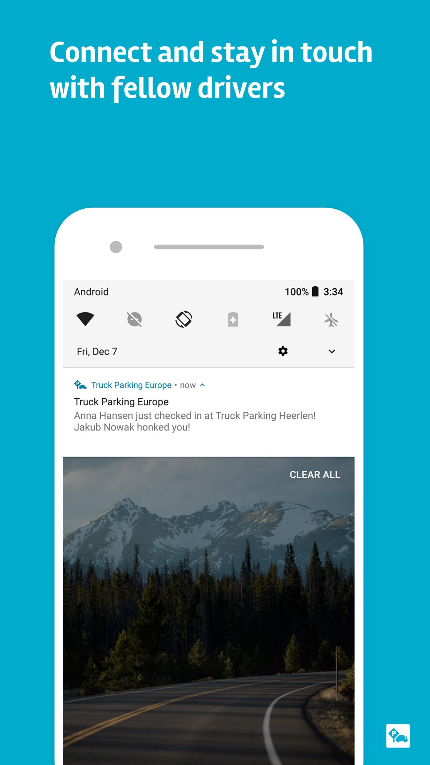 - Free app with over 52.000 truck parking areas and spots