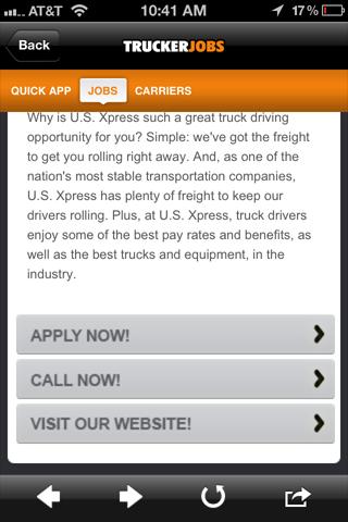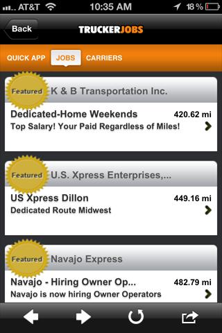 Trucker JOBS App. The first mobile app in the trucking industry designed to help truck drivers find the job and pay they deserve today! You can search jobs by type (Owner Operator, Company Driver, Lease/Purchase, Team). Search by State, zipcode and by carrier. We are adding new Carriers and job postings everyday so check your TruckerJOBS app frequently! We also included a "Quick App" feature which will allow you to submit a quick application directly from your phone. Once we receive your application we'll match with hiring carriers. Other new and excited app features will be coming soon! We are excited to offer you this 100% FREE APP and we will continue to improve this app through your feedback. Truck Driver Jobs - Trucking Jobs -
