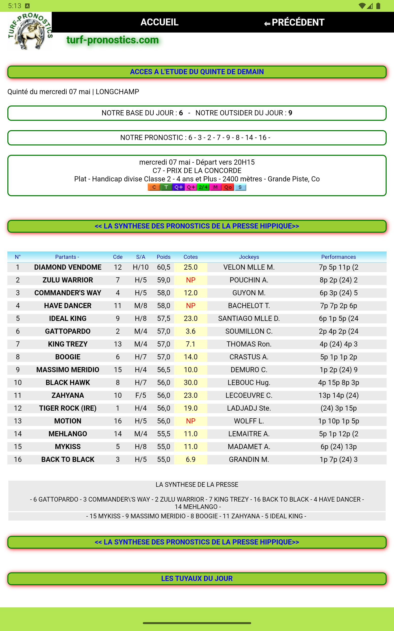 Turf: results and predictions