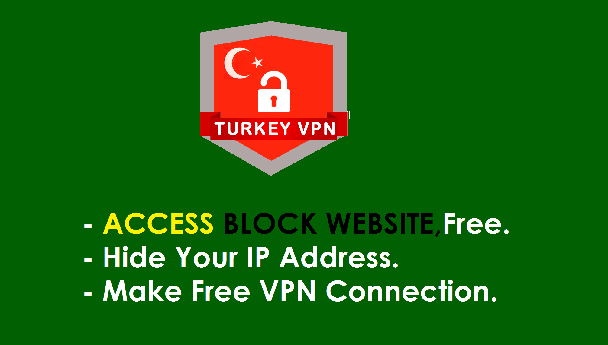 Turkey vpn free is best vpn app. It is free vpn app which connect you to different vpn server. Open and access any Block website of any country from any where in the world. Free 100% for unlimited time & bandwidth. This app is best vpn app to open block website and unblock proxy. Which helps in opening block website and make secure vpn connection. This Free VPN is one of the fastest Secure Proxy VPN app. It is totally Free VPN Proxy Master app for unlimited time. It serve you lot of Free VPN Servers all the time with free unlimited time trial. You can unblock social sites, like FACEBOOK, TWITTER, LINKEDIN using this app It keeps your mobile activities anonymous. Making your online activities secure. Unlimited bandwidth. This Faster vpn will change your virtual location, unblock any content and access to all your favorites websites and apps of any country. It can secure your online activity, while working from any city and can work from any where. SECURE ALL ONLINE ACTIVITIES - Protect your mobile security, so your connection privacy and personal information will be protected from hackers, identity theft, and other malicious activities when we detect a public Wi-Fi network. - Enjoy private browsing. VIP HIGH SPEED SERVERS This is one of the most trusted security, privacy and access platform with top performance on speed, stability and security to unblock sites, unblock any apps or websites, access social networks, watch videos and movies, protect Wi-Fi hotspot security and protect privacy. FREE & Unlimited - 100% unlimited free VPN proxy! - No credit card information needed. No trials offered. - Truly unlimited, No session,speed and bandwidth unlimitation Security - Protect Privacy and Security - NO LOGS! That means, that you're absolutely anonymous and protected while using our app. - Protect your network traffic under public WiFi hotspot browse anonymously and securely without being tracked. MORE FEATURES & FUNCTION: • It provides you own Browser • Unlimited Bandwidth to use • Endless list of countries to connect to worldwide! • Simple one click to connect • Super fast speed proxy • Proxy any apps and sites in any country • No Need to Login, Totally Unlimited, No Limitation. • Very High Speed Servers Available all Time. • One Click to Connect to Fastest Server. • One Click to Secure your Connection and Enjoy Private Browsing. • Work with any Connection Type, 3G, 4G, LTE, and Wi-Fi. • Protect your privacy, prevent tracking • No registration required, no settings required • No system root required HOW TO CONNECT? • Open app • Select country to connect • Click on CONNECT BUTTON DISCLAIMER This is complete free vpn connecting app. Here you can get different vpn servers of different country any time. Some time some vpn server disappeared or get slow because of huge number of users using it. So you can refresh it while click the REFRESH VPN SERVERS button inside the app. You will get new vpn server when you click it.