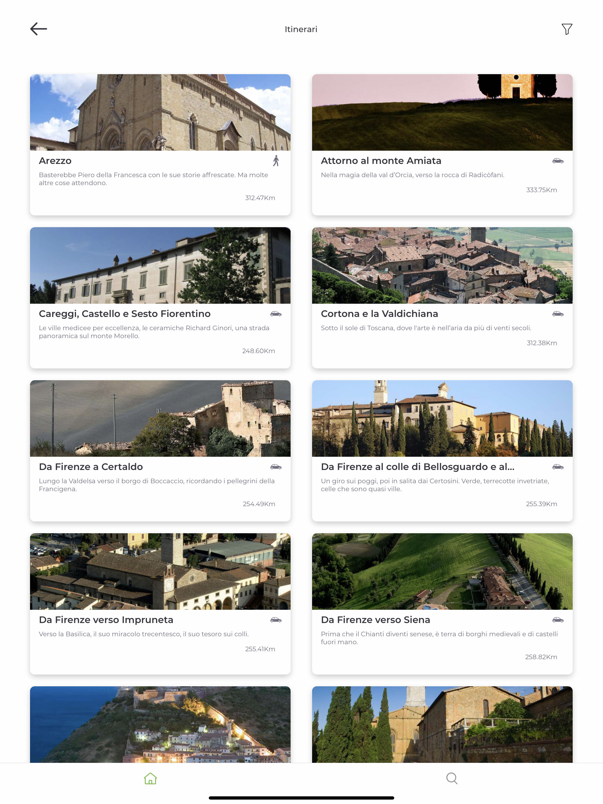 61 tours by foot or by car to discover the Region: culture and nature, between cities, ancient villages and beautiful landscapes, from rolling hills to the coast and the islands of the Tuscan archipelago. Each tour with photos, an important selection of points of interest geolocalized on the map