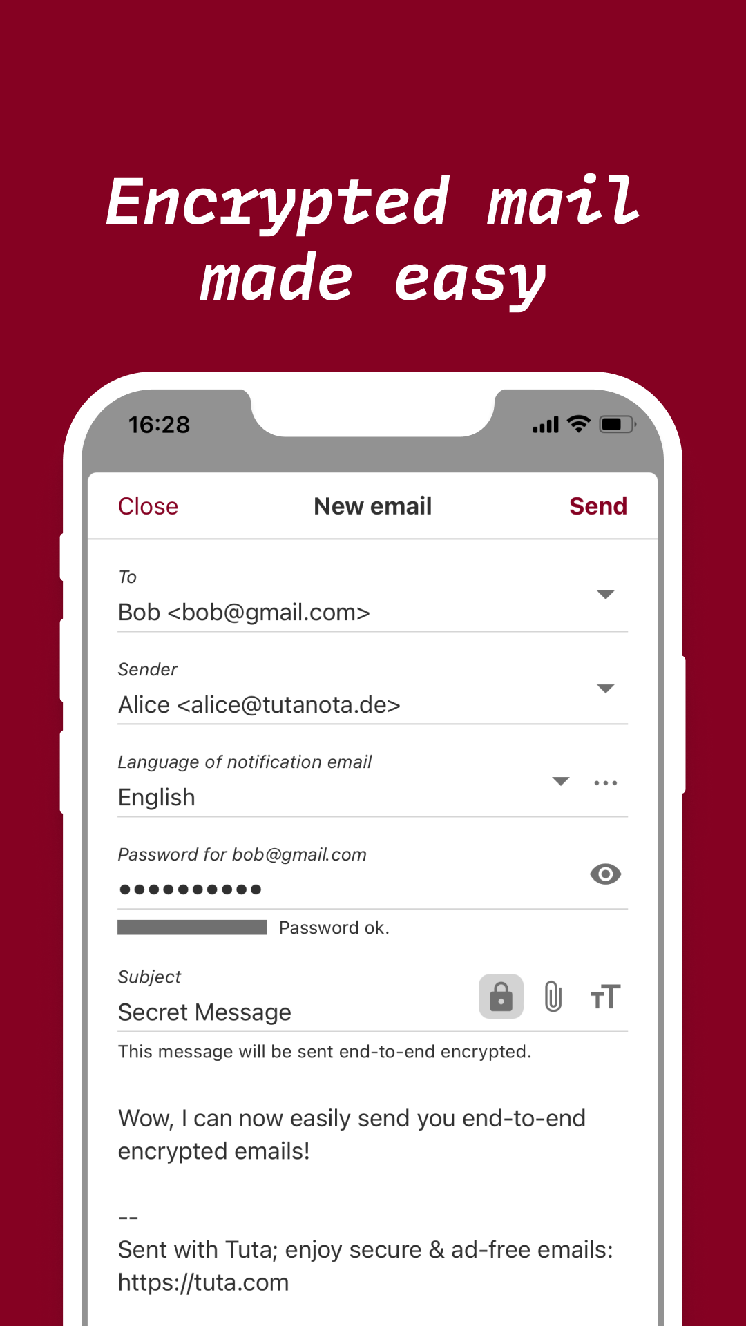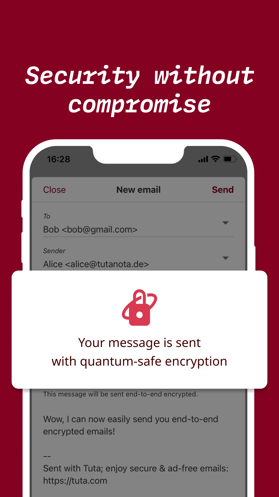 PROTECT YOUR PRIVACY WITH TUTA MAIL FOR FREE: SECURE, PRIVATE AND ENCRYPTED EMAIL Take control of your communications with Tuta Mail - the world's most secure email service trusted by over 10 million users worldwide. Keep your email messages and contacts private with end-to-end encryption. Fast, open source, and free, Tuta Mail is designed with highest security standards. WHY CHOOSE TUTA MAIL? Stay Secure • End-to-End Encryption: Your entire mailbox and contacts are fully encrypted - only you can access them. • Zero Tracking: We do not track or profile you. Your data is yours alone. • Anonymous Registration: Sign up without providing a phone number or personal details – for free, or pay anonymously with cash or cryptocurrencies. • Open Source: Our code is publicly available for security experts to verify. Be More Productive • Free Secure Email Address: Create a free email ending with @tutamail.com, @tutanota.com, @tutanota.de, @tuta.io, or @keemail.me with 1 GB of free storage. • Exclusive Domain: Use the short @tuta.com with your favorite email address in a paid account. • Auto-Sync: Seamlessly sync your data across the app, web, and desktop clients. • Offline Access: Access your encrypted emails even without an internet connection. Easy to Use • Intuitive Interface: Enjoy a clean, user-friendly design with light and dark modes. • Quick Swipe Gestures: Easily manage your inbox with swipe actions for moving email messages to Trash or Archive. • Full-Text Search: Find what you're looking for with the secure, encrypted search functionality. • Actionable notifications: Delete or move an email from a notification to save time. Advanced Features for Professionals • Custom Domain Email Addresses: Create personalized email addresses with your own domain and unlimited email addresses in paid plans. • Extended Storage Size: Get up to 1000 GB of additional storage. • Business Tailored Solutions: Manage multiple users with flexible admin controls and user creation options. Bonus: Free Encrypted Calendar App In addition to Tuta Mail’s secure email account, you’ll also get access to our free encrypted calendar app, giving you the same level of privacy and control for managing your events and scheduling. It’s the perfect complement to your confidential email experience, available with any plan. WHO IS BEHIND TUTA MAIL? Freedom Fighters committed to protecting Freedom of Speech and the Right to Privacy! • Developed and Hosted in Germany: Adhering to strict GDPR data protection laws. • Private by Design: Secure password reset ensures we have no access to your data. • Secure Transmission: We use TLS with PFS, DMARC, DKIM, DNSSEC, and DANE for secure email transmission. TRUSTED BY SECURITY EXPERTS “Tuta provides users with an exceptional level of security and privacy. The service is affordable and incredibly easy to access. If security is your primary concern when choosing an email provider, there's not much better than Tuta.” - TechRadar “Given that Tuta is open source, and they have a pipeline of amazing products in development, I pulled the trigger and moved my email there.” - Journalist Dan Arel “Tuta’s email security is second to none, while its mobile apps are fast, efficient, and user-friendly. Pricing plans are fair and affordable, with a free option available, all with added value like a calendar.” - CyberSynchs JOIN MILLIONS WHO TRUST TUTA MAIL Protect your private messages today. Download Tuta Mail now and join millions who trust us for secure, encrypted communication. Our Website: https://tuta.com Open-Source Code: https://github.com/tutao/tutanota