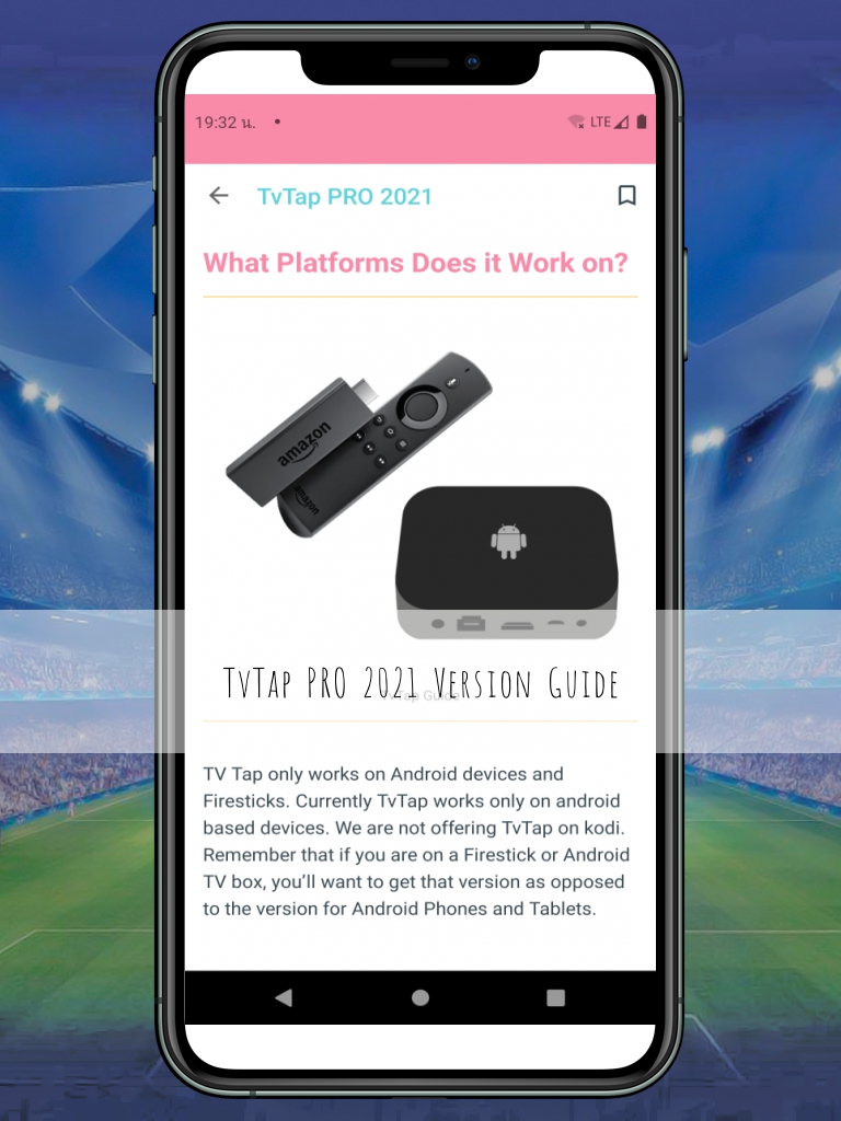 TVTAP PRO 2021 Guide (Package Name: tap.protv.latestap) is developed by TapSwift and the latest version of TvTap PRO 2021 Version Guide 1.0 was updated on January 21, 2021. TvTap PRO 2021 Version Guide is in the category of Books & Reference. You can check all apps from the developer of TvTap PRO 2021 Version Guide. Currently this app is for free. This app can be downloaded on Android 4.4+ on APKFab or Google Play. All APK/XAPK files on APKFab.com are original and 100% safe with fast download.
