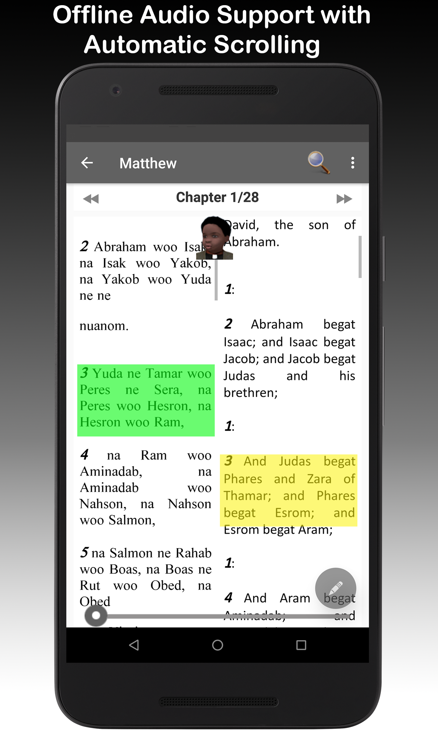 - Full offline Speech and audio support - Smart Kofi can automatically scroll & read out loud scriptures to you
