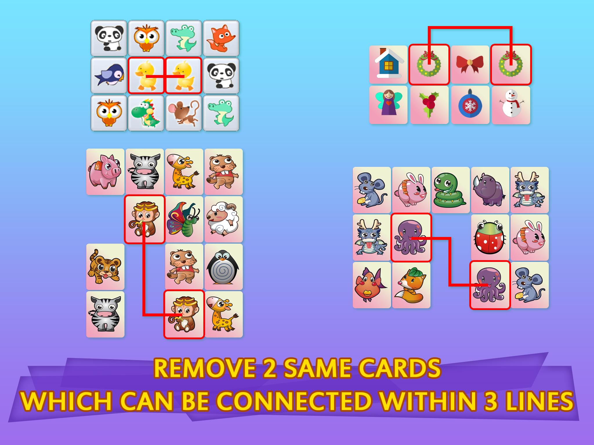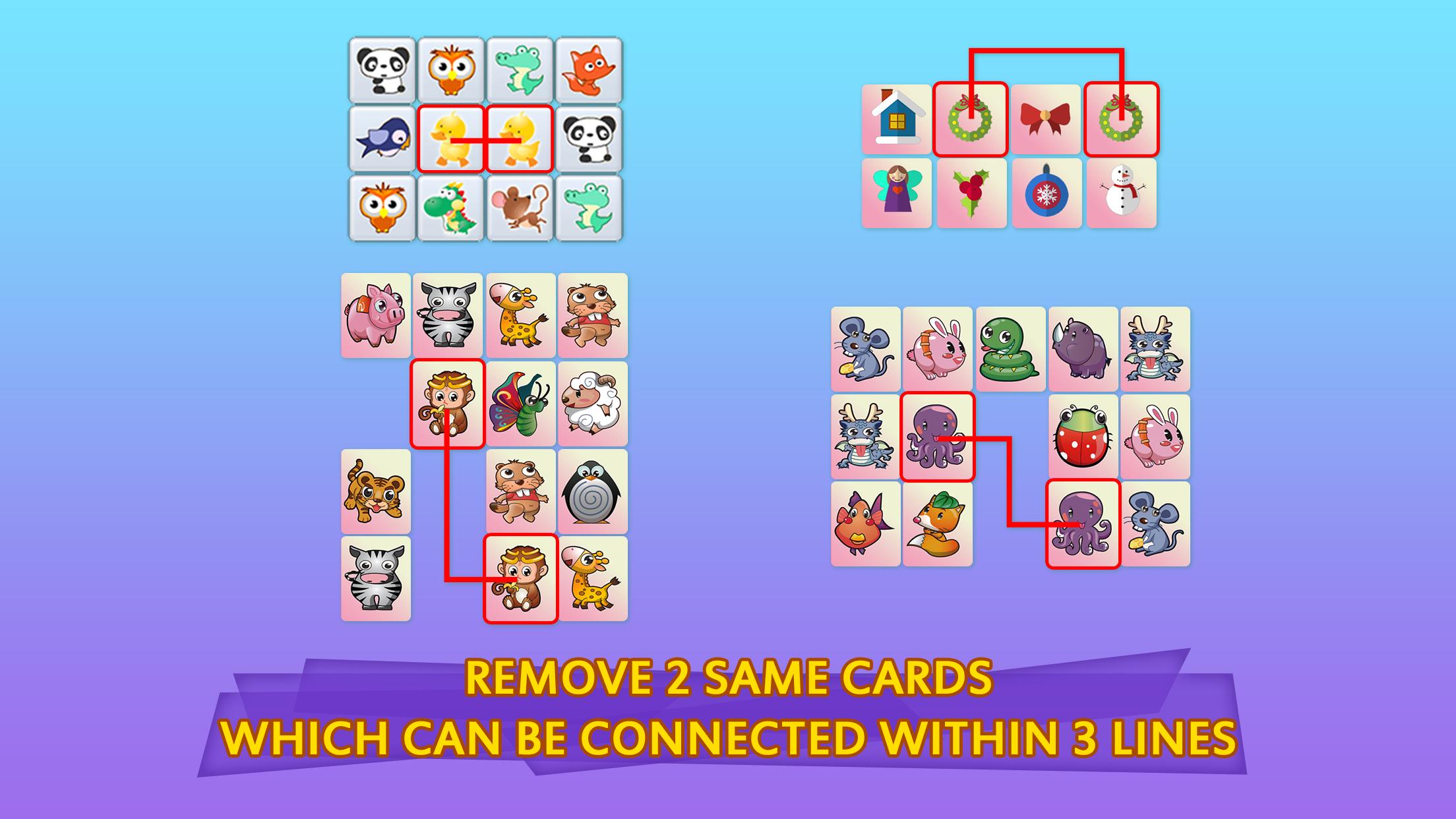 Remove 2 same noel images which can be connected within 3 lines