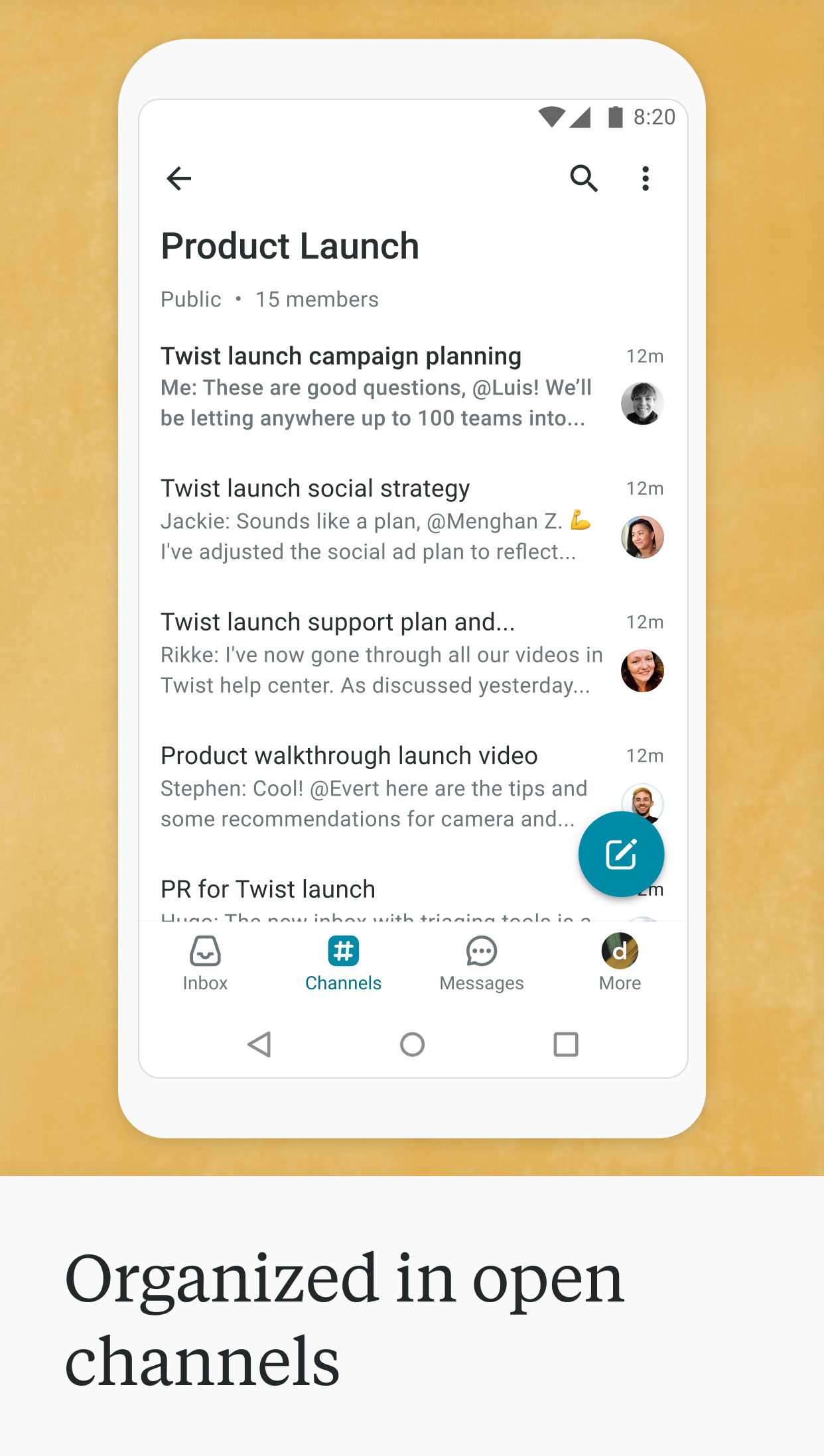A communication app for teams who want to create a calmer, more organized, more productive workplace.