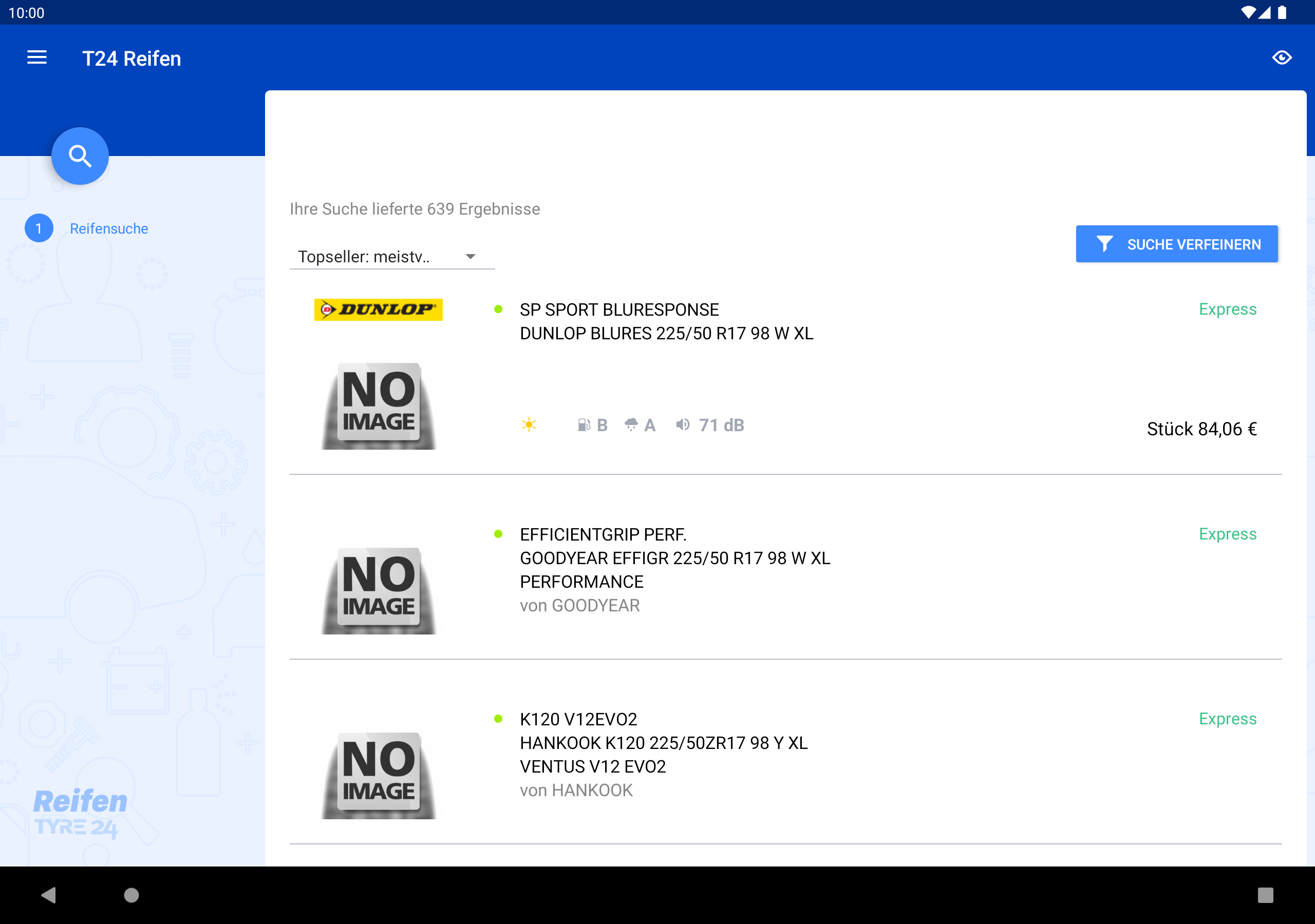 T24 Reifen (Package Name: ag.saitow.tyres.android) is developed by ALZURA AG and the latest version of Tyre24 Reifen 5.5.0 was updated on December 24, 2025. Tyre24 Reifen is in the category of Auto & Vehicles. You can check all apps from the developer of Tyre24 Reifen. Currently this app is for free. This app can be downloaded on Android 5.0+ on APKFab or Google Play. All APK/XAPK files on APKFab.com are original and 100% safe with fast download.