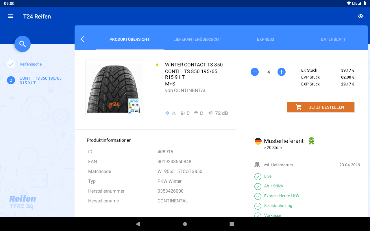 T24 Tire Marketplace App Buy cheap tires anytime, anywhere. Are you on the road and urgently need a tire for your customers? No problem! Because with our app you get mobile access to the entire Tyre24 tire range. That's over 2,000 suppliers from all over Europe who offer more than 250,000 tires on our marketplace. It doesn't matter whether it's summer, winter, all-weather or motorcycle tyres: Find the product you need using the convenient search function by tire size plus match code, EAN and much more. This means you get the right product for your tire search wherever you are - and you can order it directly and in a time-saving manner. features - Matchcode search - EAN search Via the Tyre24 marketplace With over 10 million products, Tyre24 has Europe's largest inventory of tyres, rims, accessories and wearing parts in the commercial sector. Not only is a comprehensive range of tires for volume models available, but also a large range of goods for exotic cars and vintage cars. In addition to availability, Tyre24 also scores with the best prices. Savings of up to 50% on the existing purchase price for an identical product are not uncommon. In this way, our customers can still save a lot when purchasing, even with wholesale conditions - and without sales agreements. To use it, you need full access to Tyre24, which you can apply for at https://tyre24.alzura.com/. This service is aimed at traders only. About ALZURA AG ALZURA AG, founded 15 years ago as Tyre24 GmbH, has rapidly developed into an international IT company. The core business includes the manufacture, operation and sale of professional e-commerce solutions. Among other things, ALZURA AG operates tyre24.alzura.com, the largest B2B platform for the automotive industry in Europe. In addition, their IT specialists develop individually adapted software systems and offer comprehensive services.