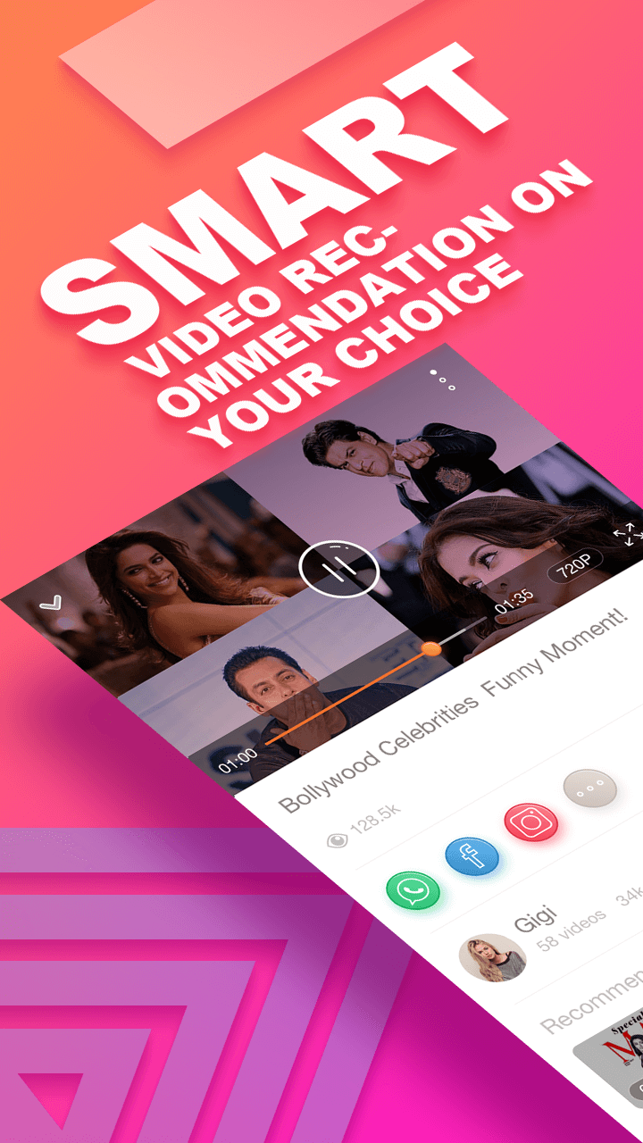 Share with your friendsIf you enjoy watching hottest movies and short videos, you can also share those with your friends via Facebook, Whatsapp, Twitter, or other social network platform.