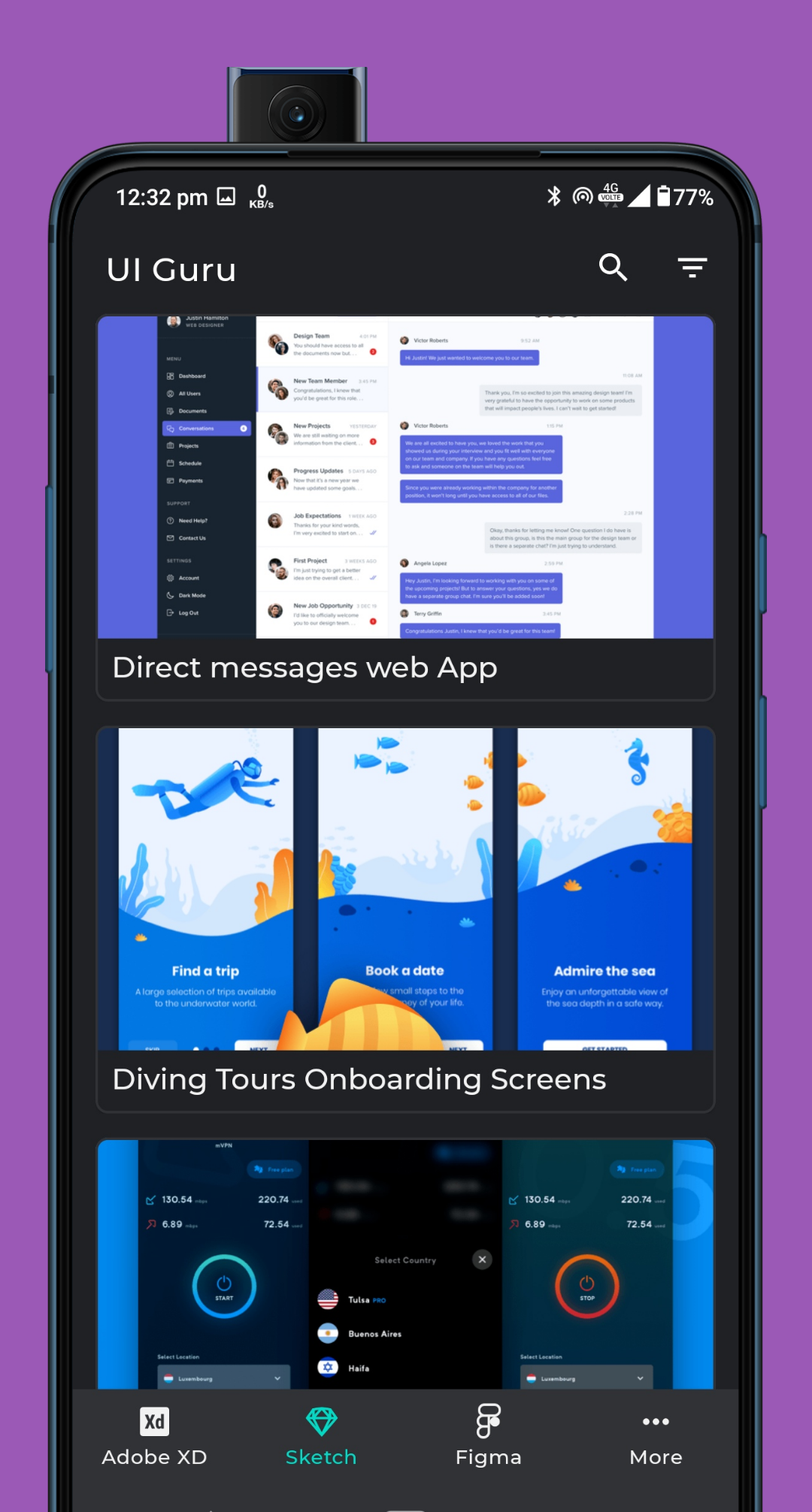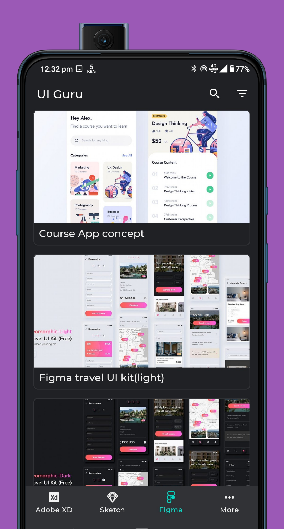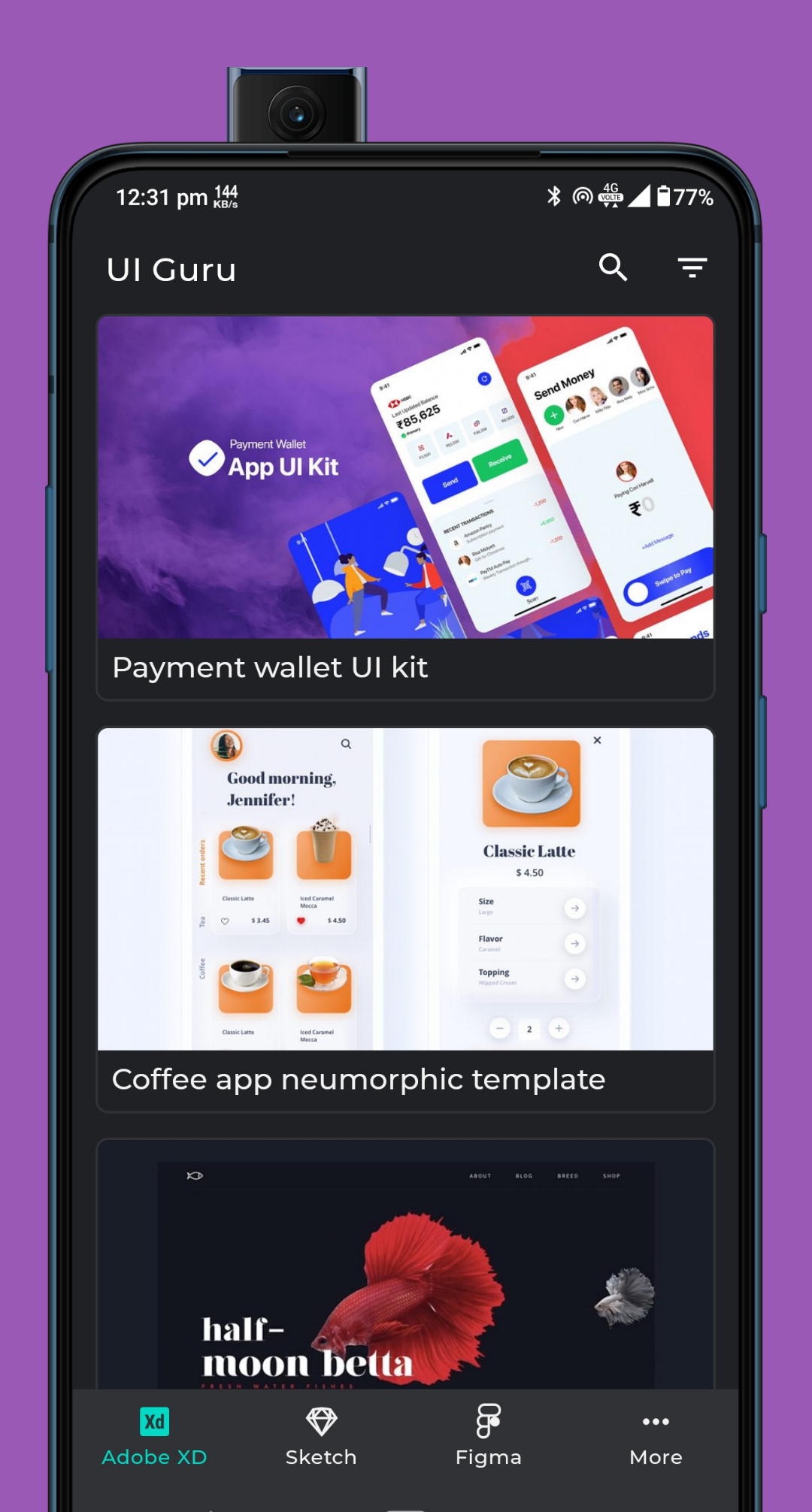 UI Guru is the ultimate library of UI Kits, templates and resources for Adobe XD, Sketch and Figma. The UI Kits and templates can be previewed and can be directly downloaded for free. New UI resources are added daily to keep you updated with the latest designs. Why should we download this? UI Guru helps UI/UX designer and developers to build beautiful applications with a good user experience. You can get inspired by 500+ user interface designs in many ways and can personalise them. It also contains templates with Android Material Design UI. Can I find the latest material designs in this app? Yes, it covers many material design components which you can find in the official website. Along with these, there are many other designs with animations such as authentications, entry screens, empty states, feed pages, backdrop and many more. Can we expect new designs on this app? Yes, new designs are added almost daily.