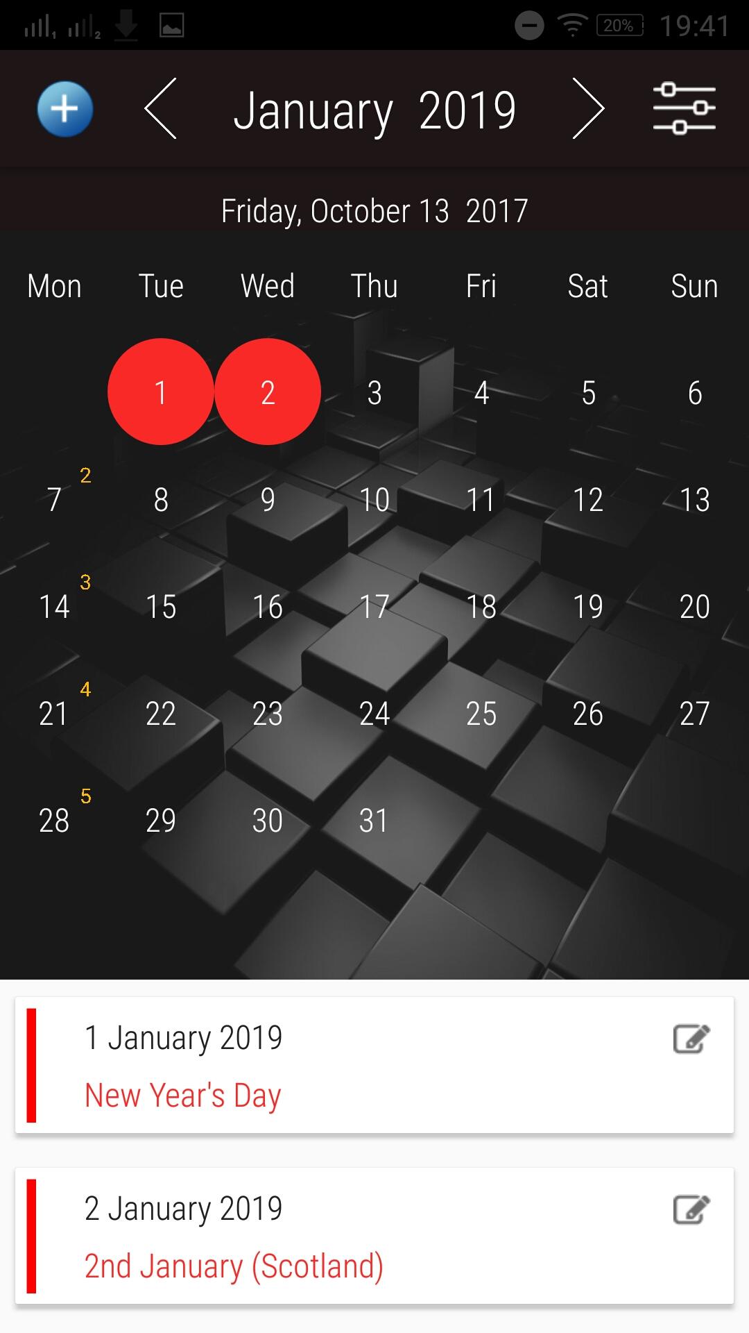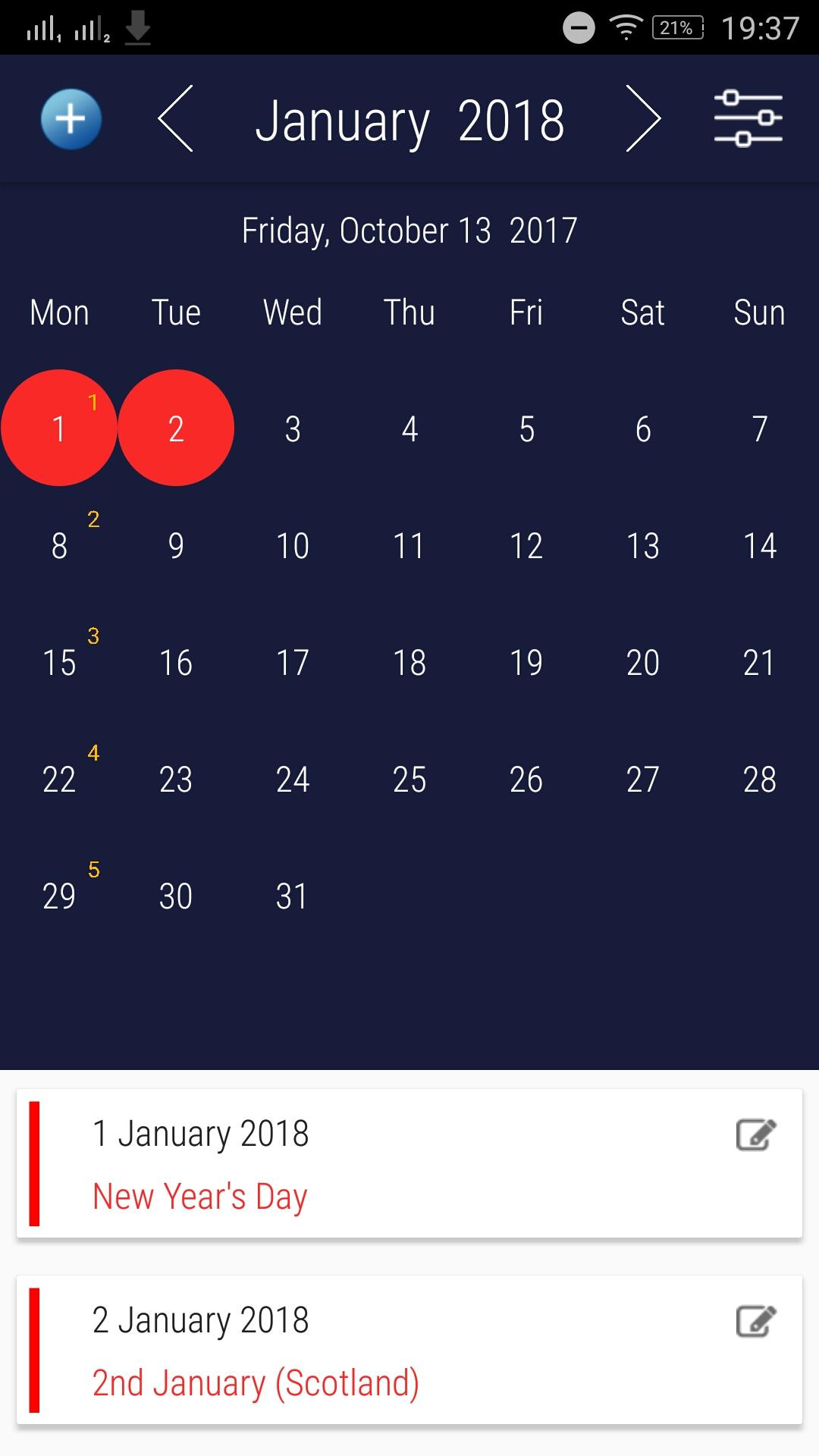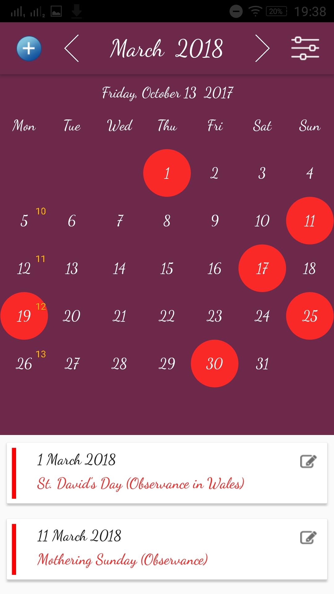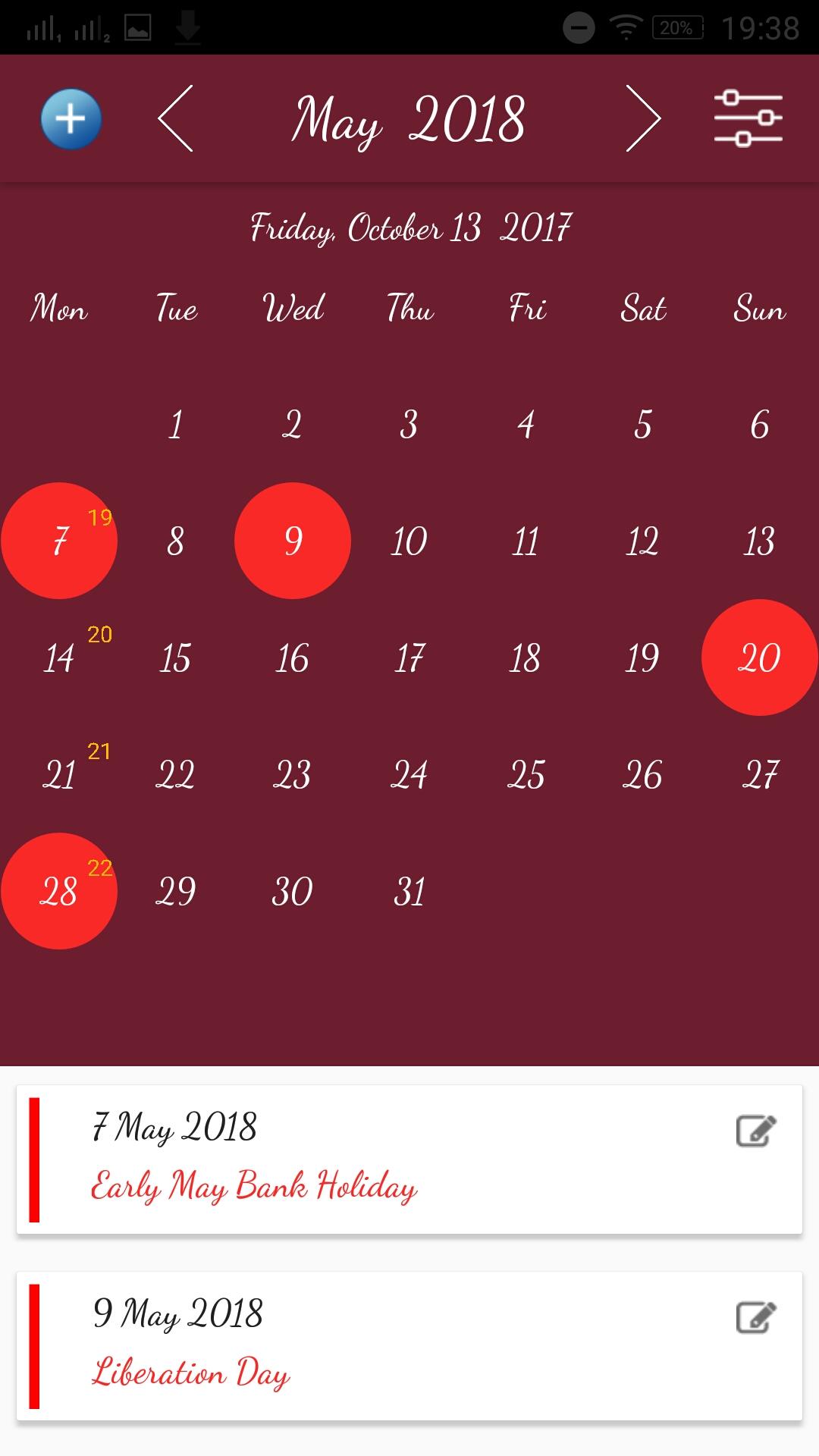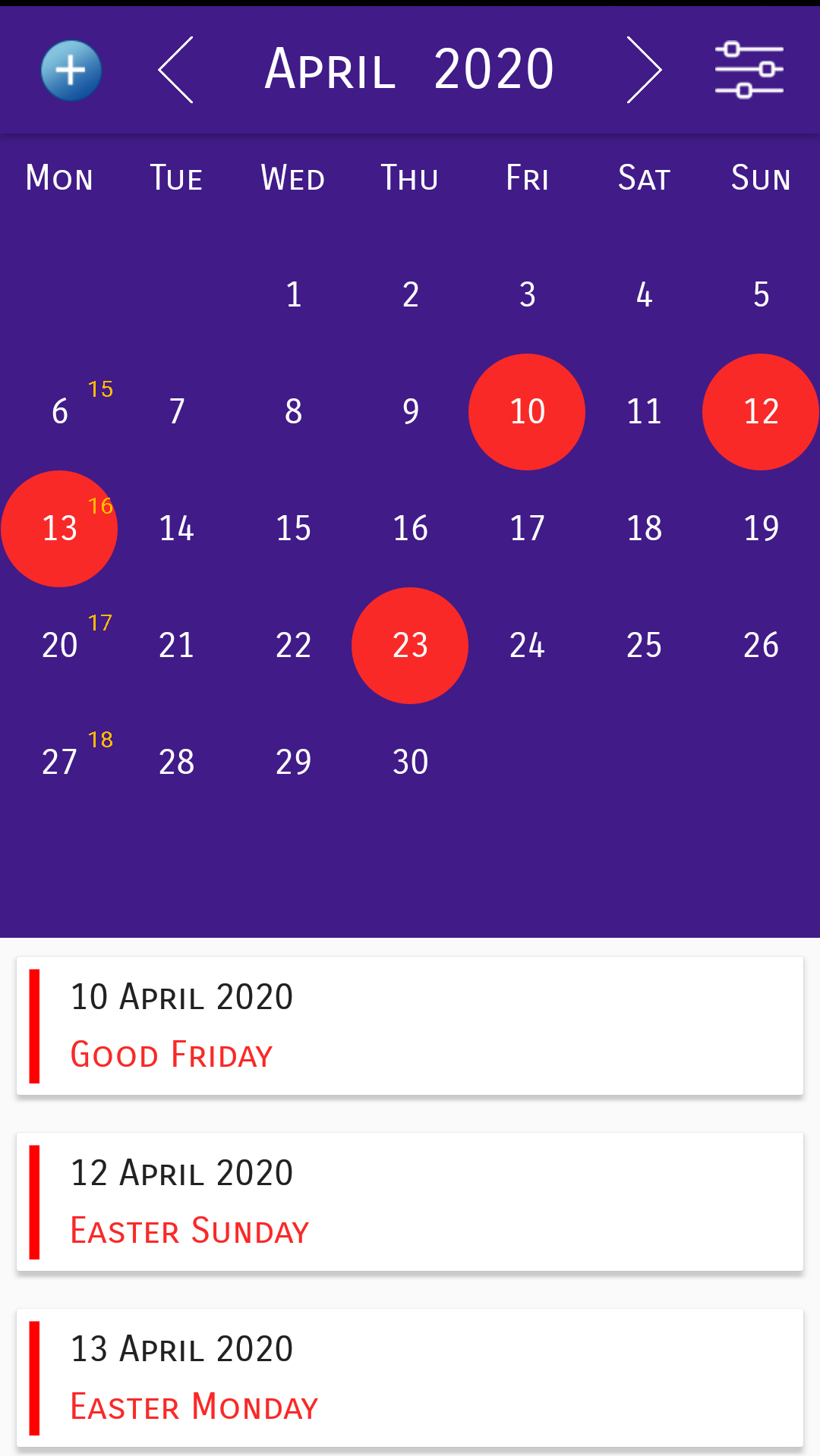 UK Calendar App with Holidays