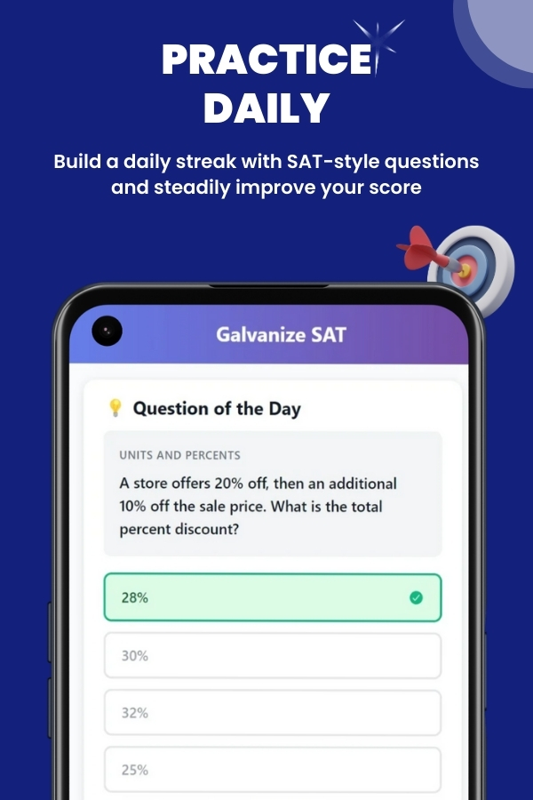 Unpack the SAT® Test Prep with Galvanize:Our SAT practice app will ensure you're well prepared to tackle any SAT practice test! Question types in the app include: