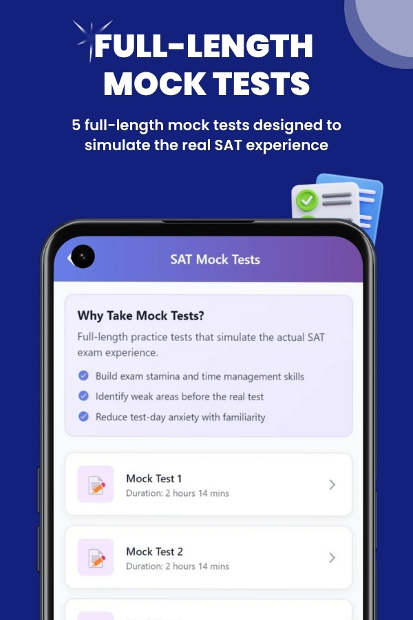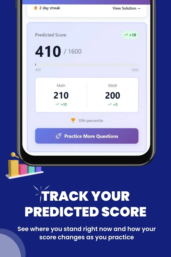 Every practice question on this SAT app is designed to increase your accuracy while answering questions. With daily practice on our SAT test prep app, you will be able to reach your goals in no time.