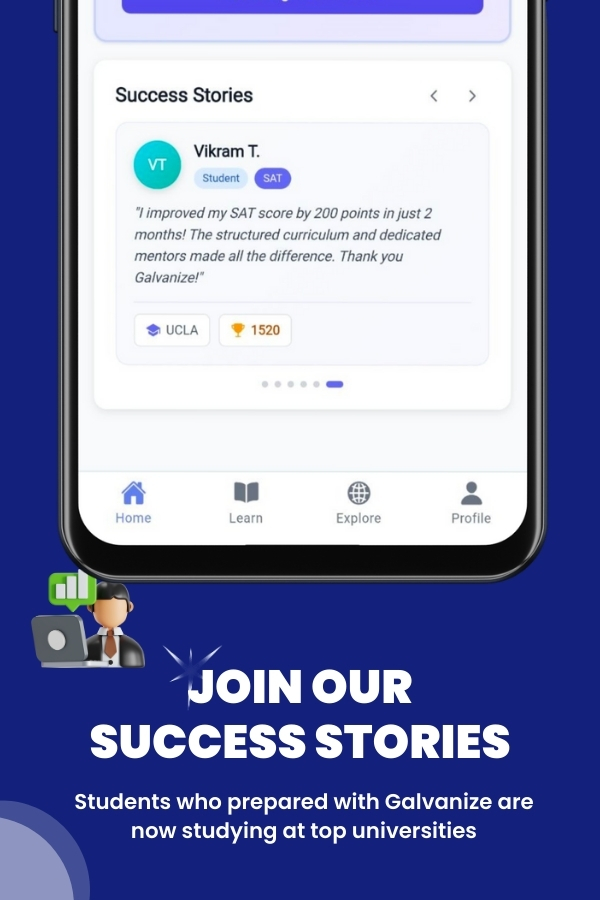 📚 What is Galvanize Test Prep?Right from SAT Prep to College Admits and everything in between, Galvanize Test prep has your back. Rest Assured. You’re one step closer to your Dream Admit.