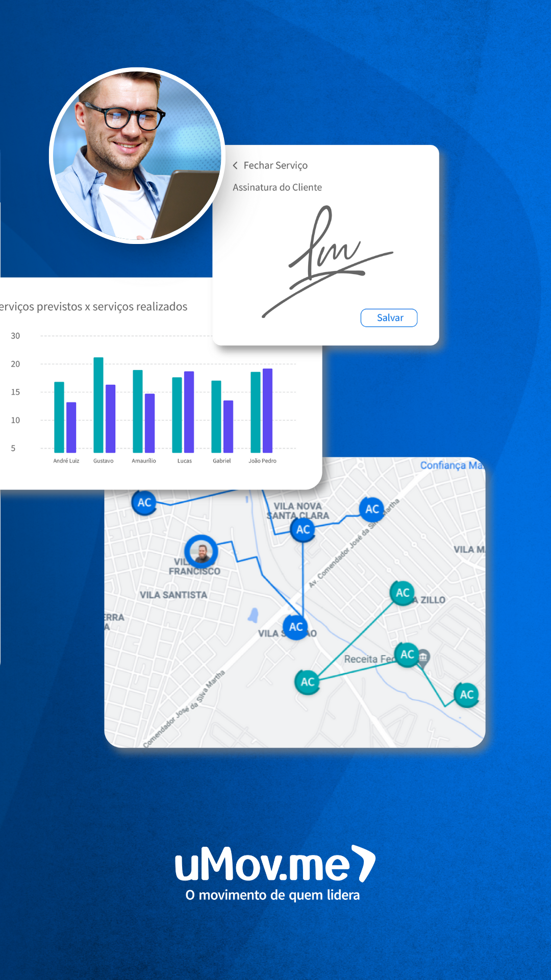 A uMov.me AI é a plataforma completa para equipes que atuam em campo, unindo automação, IA e gestão em tempo de execução. Com ela, cada profissional recebe orientações inteligentes para executar com precisão, enquanto gestores acompanham tudo em movimento, com dados atualizados minuto a minuto. O aplicativo oferece execução guiada, comunicação integrada, registros padronizados, fotos, assinaturas digitais e fluxos que reduzem falhas e eliminam retrabalho. Cada atividade gera informações confiáveis, transformando a operação em uma fonte contínua de produtividade. Empresas de diversos setores utilizam a uMov.me AI para elevar o nível de suas operações de campo, conquistar mais eficiência e entregar experiências melhores aos seus clientes. Recursos principais • Orientações inteligentes com agentes de IA • Registro rápido de atividades e ordens de serviço • Fotos padronizadas e assinaturas digitais • Comunicação direta entre equipe e gestor • Indicadores de produtividade em tempo de execução • Fluxos automatizados que aceleram processos • Integração com sistemas internos da empresa A uMov.me AI é o movimento de quem lidera.
