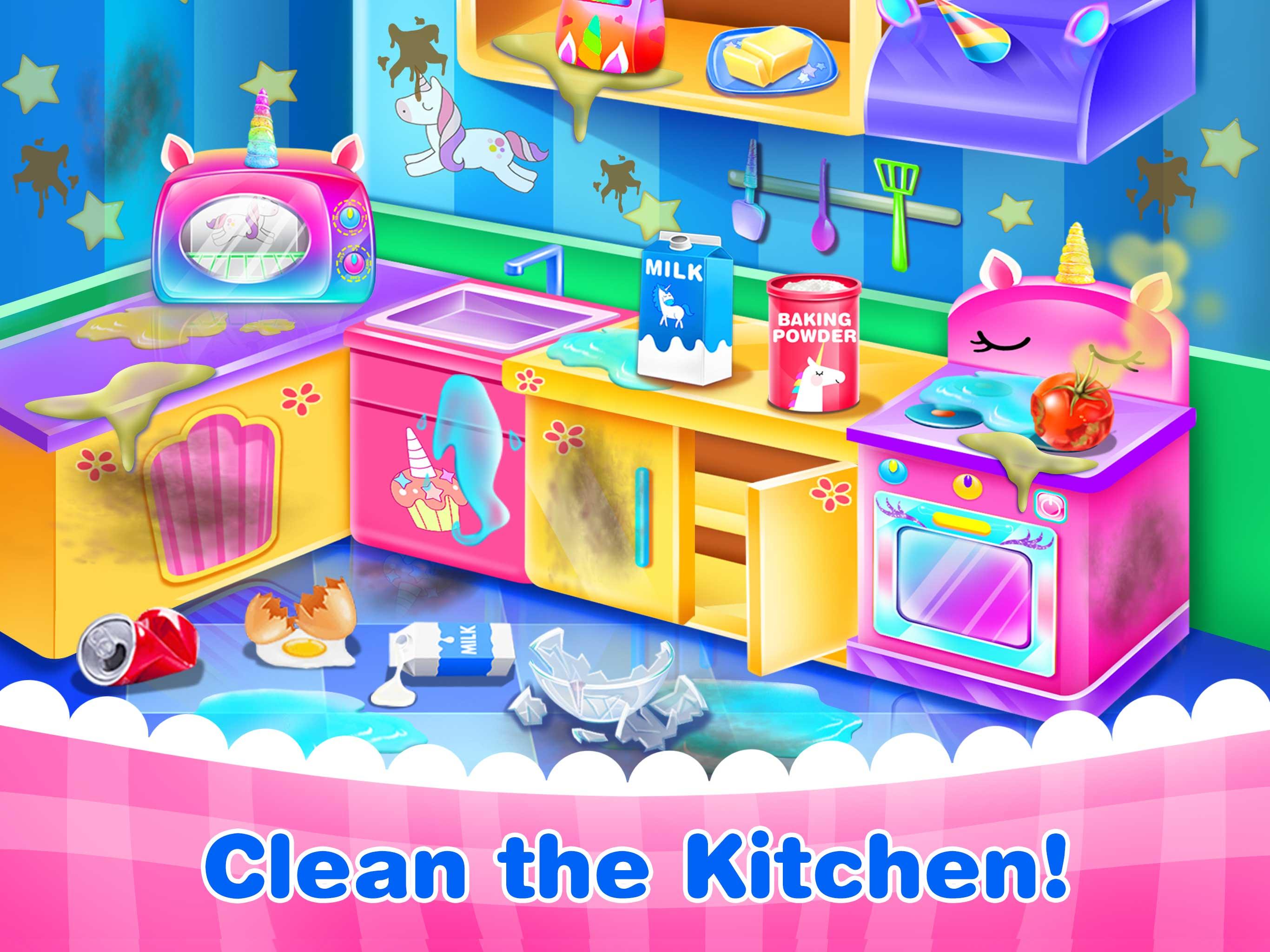3.Unicorn Cupcake Maker- Baking Games For Girls have four step to make tasty cupcakes. First, you need to clean the crazy kitchen, then go to supermarket to buy the ingredients that cupcake baking may need, after this you could make cupcake based on cup cake recipes and decorate it with unicorn style in birthday cake games