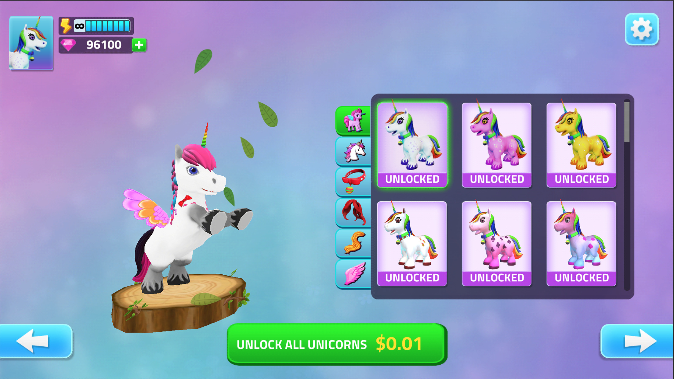 You got a magical pet! 🌈 Meet Finley, your virtual rainbow unicorn. Discover the world of pony horse games and take care of your animal. Unicorn games offer an exciting storyline and daily fun chores to help your virtual pet survive the jungle life. Get new rainbow unicorn adventures and fun challenges daily. Play Unicorn simulation games anywhere, anytime! 🦄 Can you deny your love for animals? Unicorn games acknowledge your love for pet horses. Our pony horse simulator offers an exciting venture and new games updates! Where’s the Lost Unicorn? 🏝️ Far up in the unicorn rainbow, a unicorn hatched called Finley. The pony horse was destined to become the princess and rule the magical land of Pony Hill. Along with the glory and beauty come calamities and enemies. An old hag was waiting for hundred years to revive her youth and it was only possible by seizing the magical powers of a rainbow unicorn. So, she did! Rainbow unicorn was sent down on a small farm jungle to survive and live as an ordinary pony horse without magical powers. Help your pony do all the chores on the farm and make new friends in baby unicorn games. 🍭 FUN FEATURES: 🍭 • Intractable UI • Play offline unicorn games • HQ graphics • Adventurous and Fun Chores • More than 12 unicorns • Customizable Accessories • Choose hair, skin, tail, etc. • Four different arenas to play • New games features • Enjoy virtual pet RPG • Daily rewards and challenges • Minimap to find friends • Smooth controls • Unlimited energy and gems • Play girl games for free The Arenas: Unicorn games arena offers four arenas for your pony to play in. 🎠 PONY LAND: Enjoy the horse simulator in the rainbow pony land arena! Feed your unicorn, play with friends, and save pets in farm horse games. 🏖️ WONDERLAND: Play in wonderland snow arena with pony horse friends. Learn skating, help build a fire for sheep, feed the pet fish, and pass the hurdle game. ⛲ WATER PARK: In water land, gather gems, save your friends, fight the evil and play green/red light. Be the pony savior. 🌄 DREAMLAND: The dreamland arena offers impressive scenery specially designed to re-live the fantasy fairyland. Make new rainbow unicorn friends, play jumpy jump, and eat fruits! How to play? 🎮 Drag the circular control in the direction of choice and take your unicorn with you. Tap the jump button to pass the hurdles. Wait for the power bar to turn green and then hit the evil with the power of the magic horn. The Rainbow horse game is one of the most fun and free games. Unicorn simulator offers easy gameplay and smooth controls to enjoy playing the girl games for free. Pony horse games visualize your fantasy of owning a unicorn pet. Participate in a new adventure daily! Race fast in rainbow unicorn run rounds. 🦄 Play the best game of ‘The Unicorn Wildlife Fun’ now on your android devices! 🦄