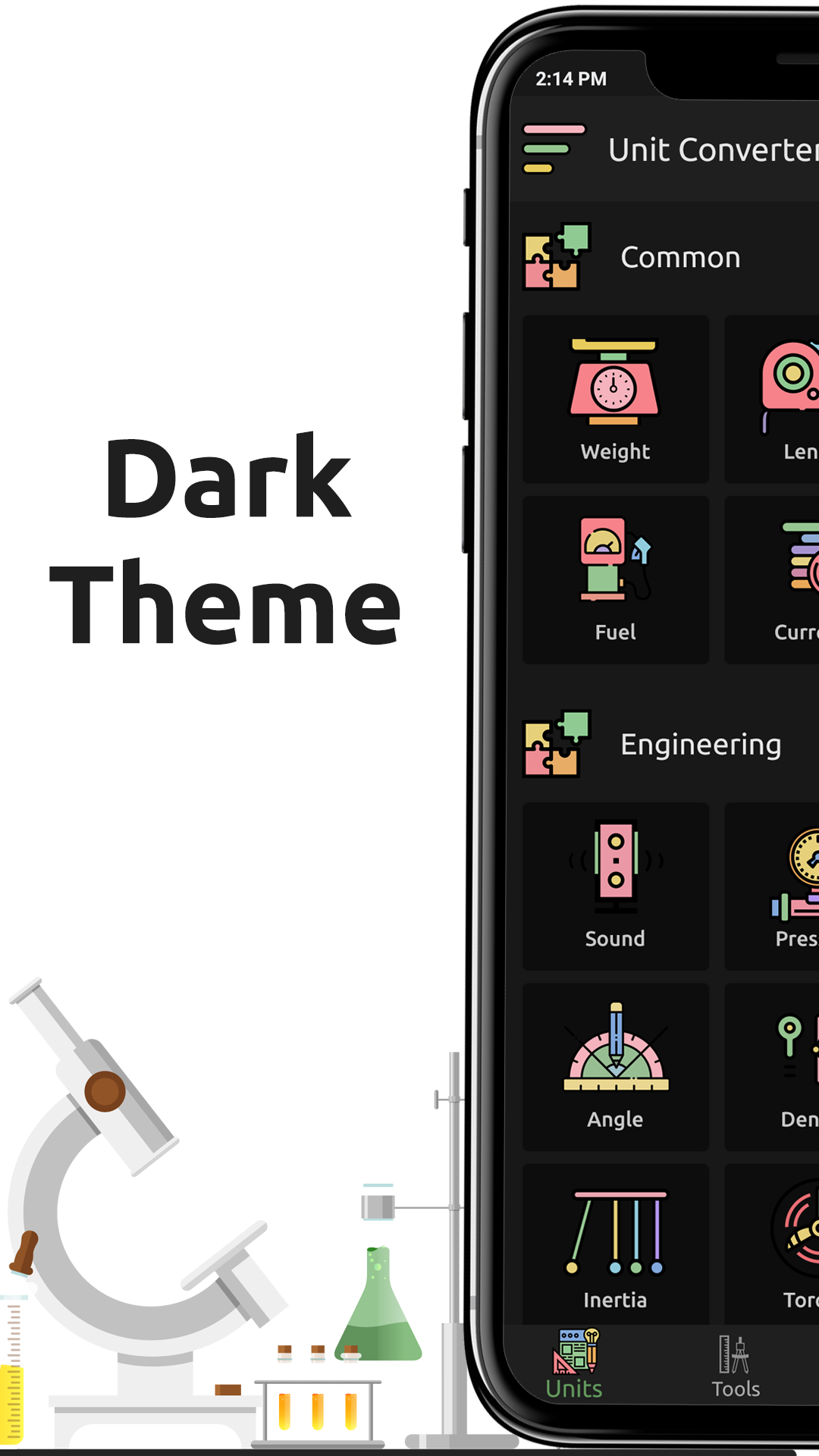 Cooking, Weight, Length, Speed, Currency, Volume, Area, Prefix, Fuel, Energy, Charge, Current, Capacitance, Inductance, Power, Conductance, Resistance, Luminance, Frequency, Illumination, Sound, Pressure, Temperature, Angle, Density, Force, Fuel Efficiency, Heat Capacity, Inertia, Torque, Heat Density, Storage, Image, Resolution, Time, Concentrate, Flow Rate, Permeability, Surface, Viscosity, Magnet, Radiology