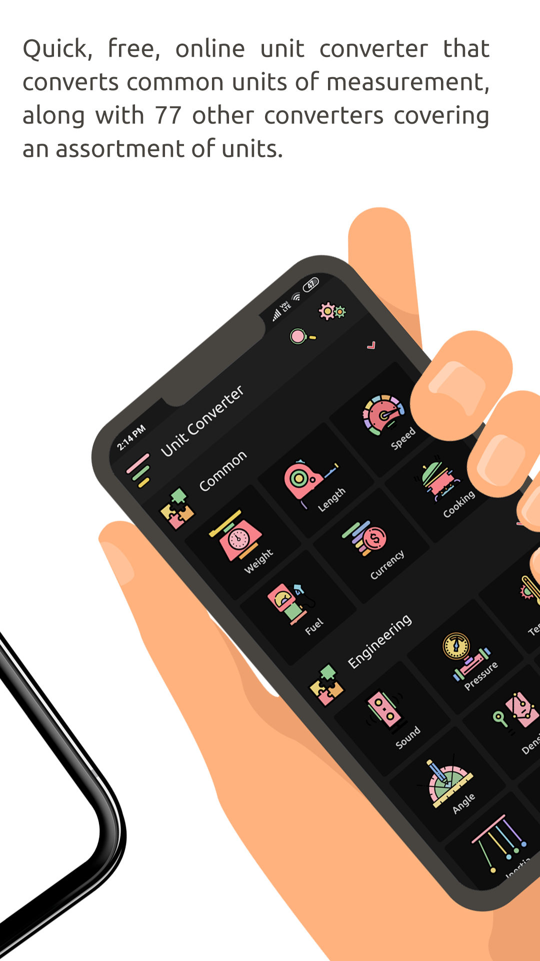Unit Converter (Package Name: com.androidapps.unit) is developed by Ninos IT Solution PVT.LTD and the latest version of UNIT CONVERTER-ALL IN ONE UNIT 3.4.7 was updated on February 21, 2021. UNIT CONVERTER-ALL IN ONE UNIT is in the category of Tools. You can check all apps from the developer of UNIT CONVERTER-ALL IN ONE UNIT and find 105 alternative apps to UNIT CONVERTER-ALL IN ONE UNIT on Android. Currently this app is for free. This app can be downloaded on Android 5.0+ on APKFab or Google Play. All APK/XAPK files on APKFab.com are original and 100% safe with fast download.
