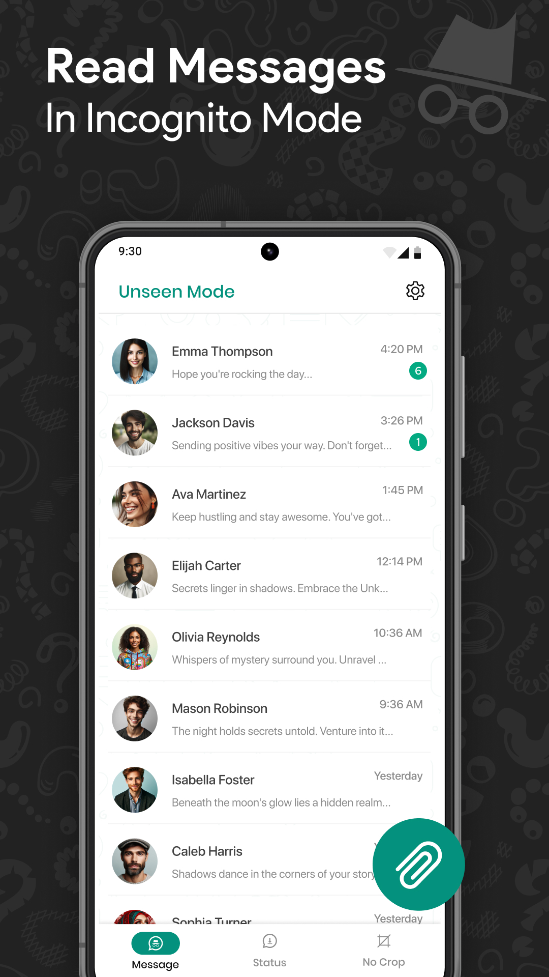 Unseen - Incognito Chat Read acts as a hidden or incognito mode to read WhatsApp messages.
