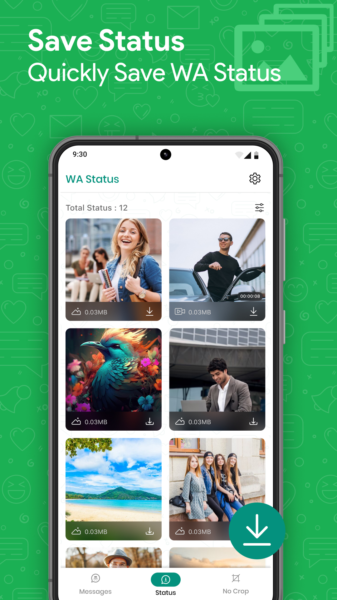 Other Features of Unseen - Incognito Chat ReadWhatsApp Status SaverThe Unseen chat app also lets you download any WA status you love❤️ with one tap and share it with your friends.