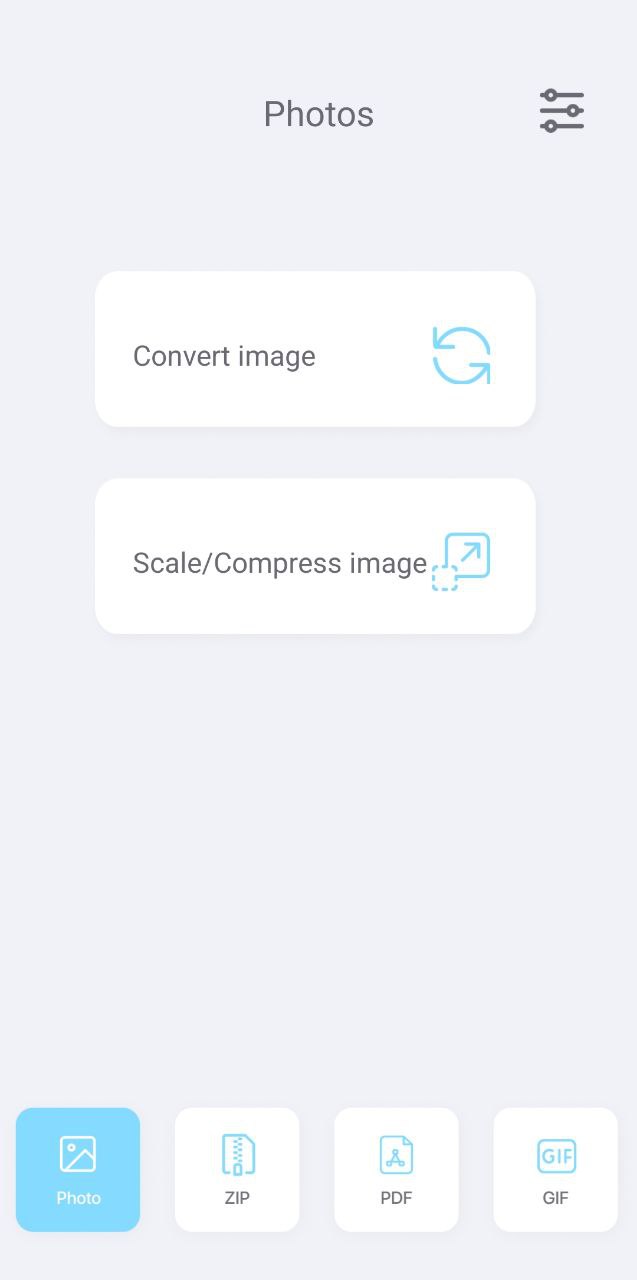 Export photo to PDF. Convert and resize JPG, BMP, PNG, WEBP, GIF. Compress and extract ZIP files.
