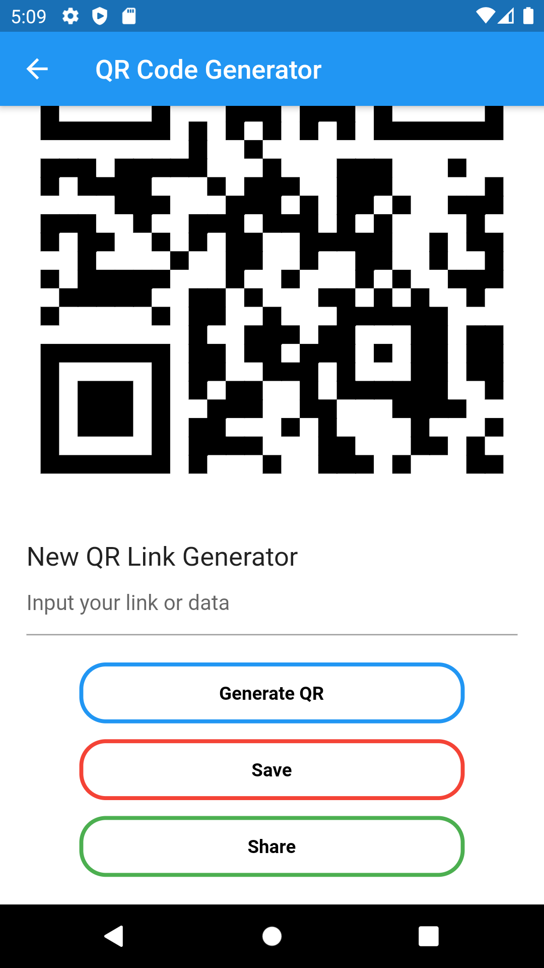 It has a function to share the generated QR code.