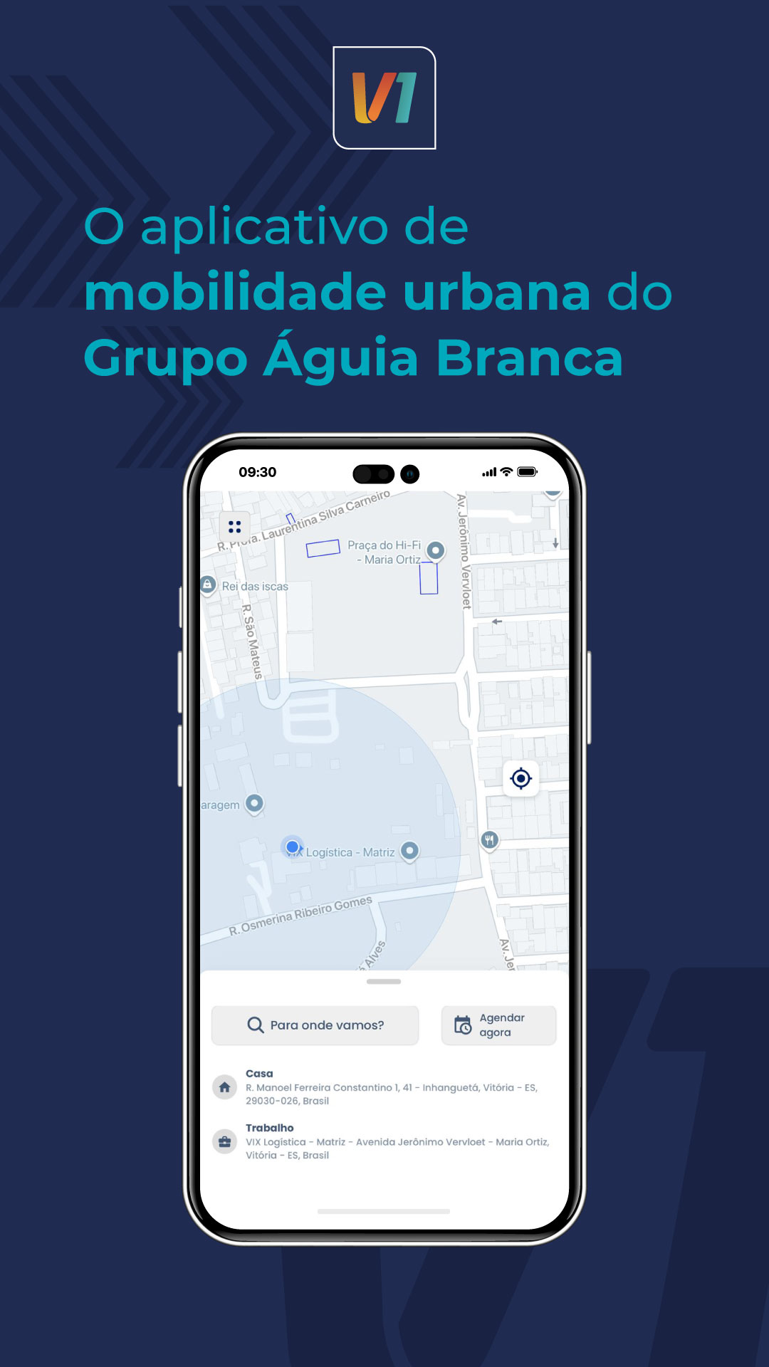 V1 | The Águia Branca Group's ride-hailing app Safe, punctual, and surprise-free transportation. V1 offers a unique travel experience, with contracted and rigorously trained drivers, a standardized fleet, and dedicated support. Here, you can count on safe trips, scheduling directly through the app, and the trust of a team that never cancels. Whether for everyday use or special occasions, you can schedule your trips in advance and travel with your pet in comfort and peace of mind—V1 is pet-friendly. Every detail has been designed to provide high-quality service—from the moment you call until you arrive at your destination. V1 is a product of the Águia Branca Group, one of the largest mobility companies in the country, with over 75 years of experience in passenger transportation. Available in the cities of Vitória, Vila Velha, Serra, and Cariacica, Espírito Santo. Download now and register in just a few minutes. If you have any questions, please contact us: 0800 721 1617
