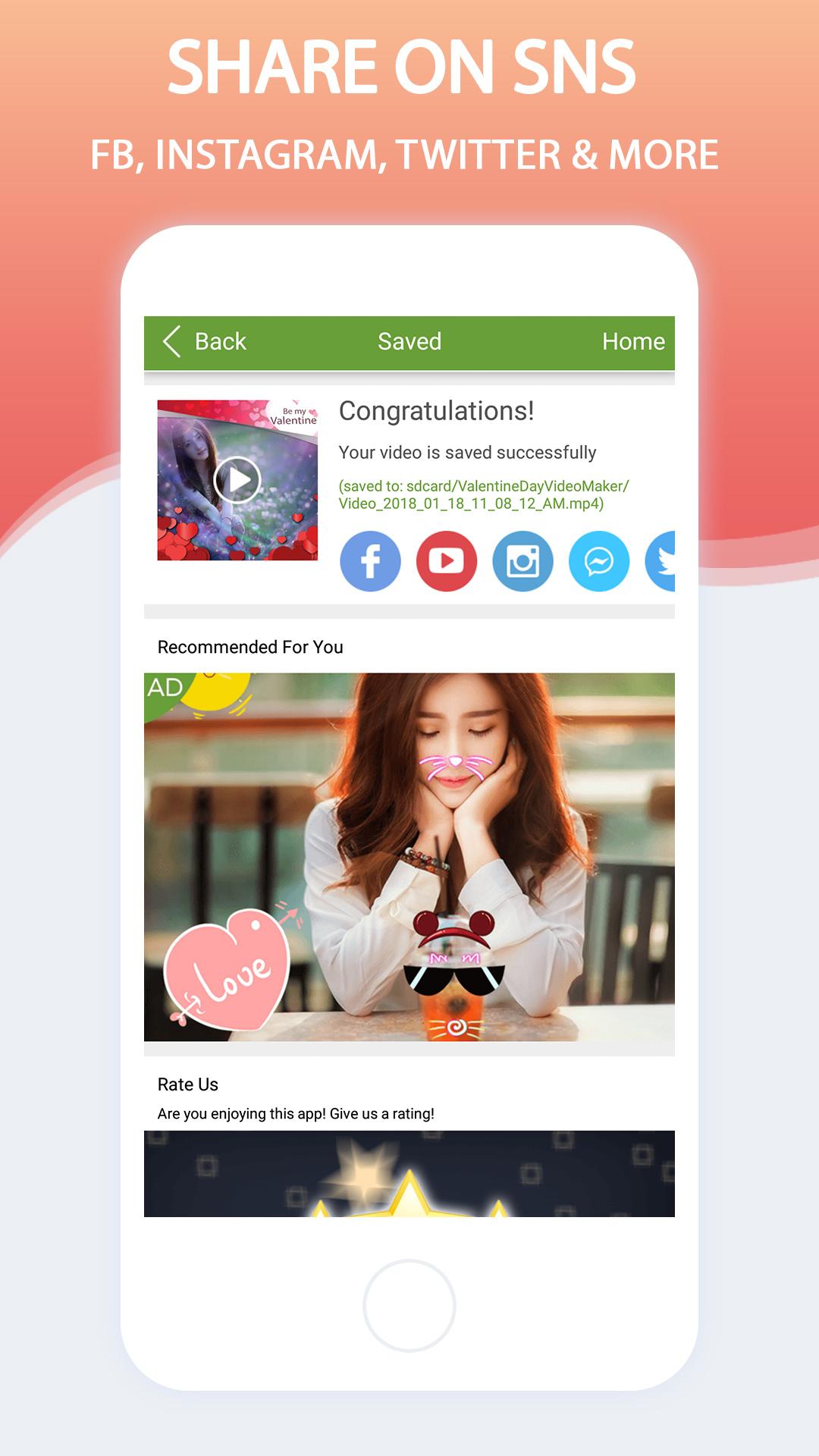 NOTE: Your video stories saved in "Album/ValentineDayVideoMaker" or "File Manager/ValentineDayVideoMaker" or “Gallery/ValentineDayVideoMaker"