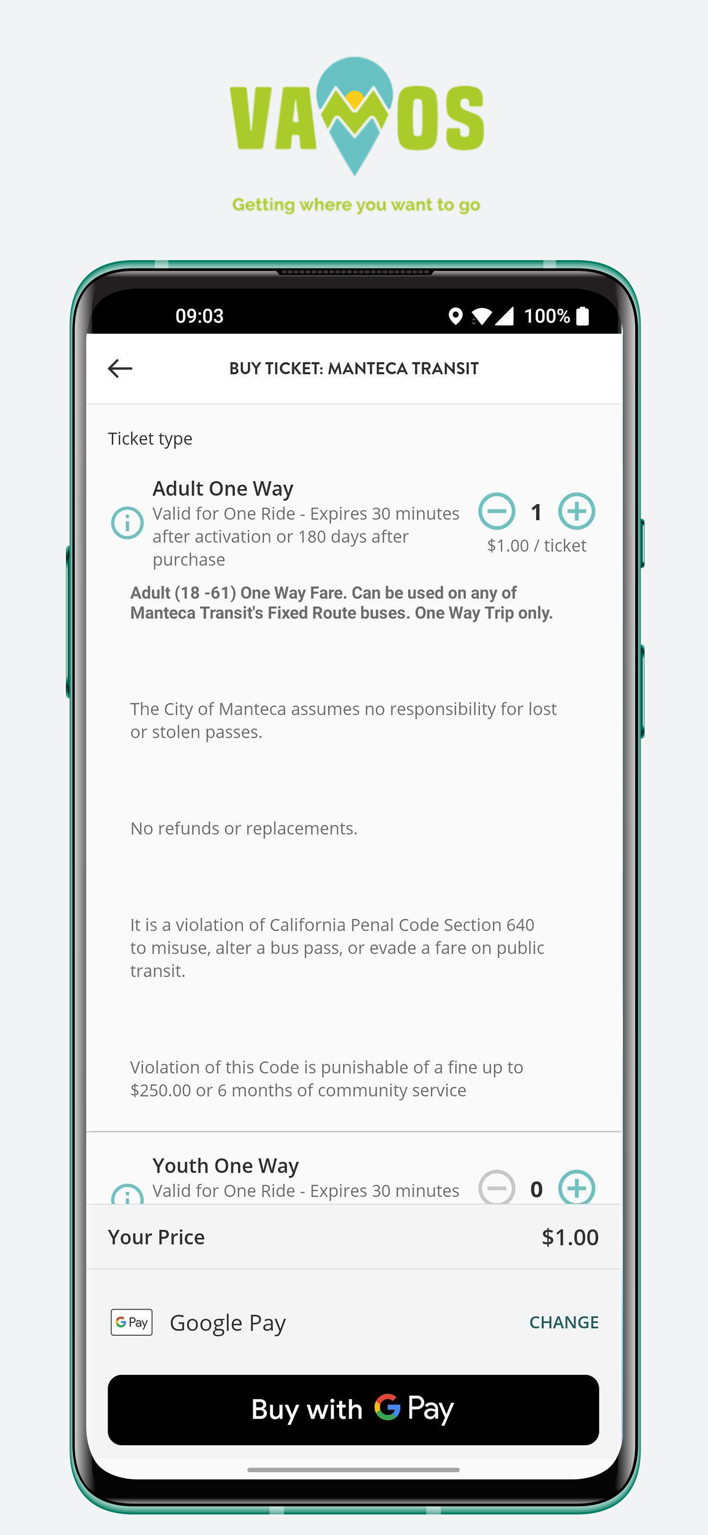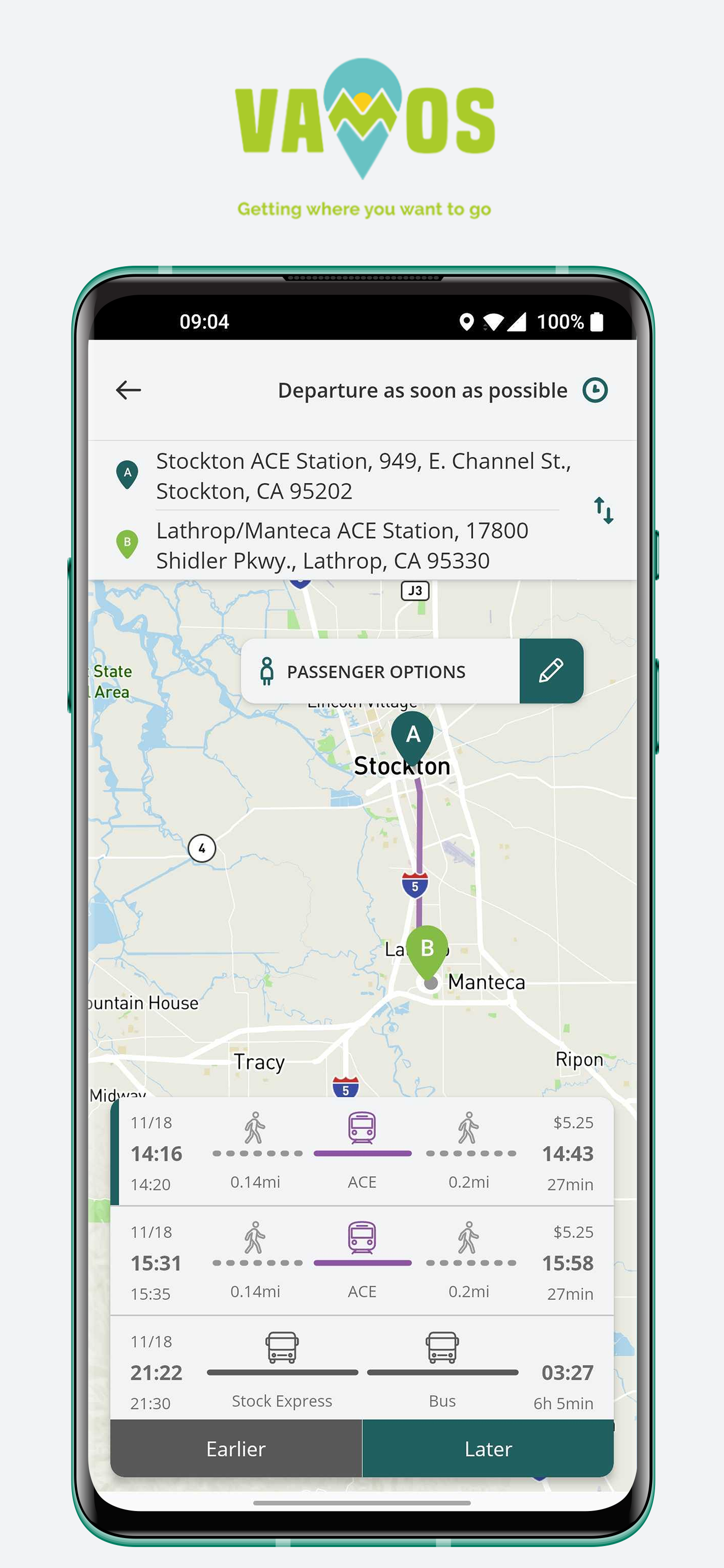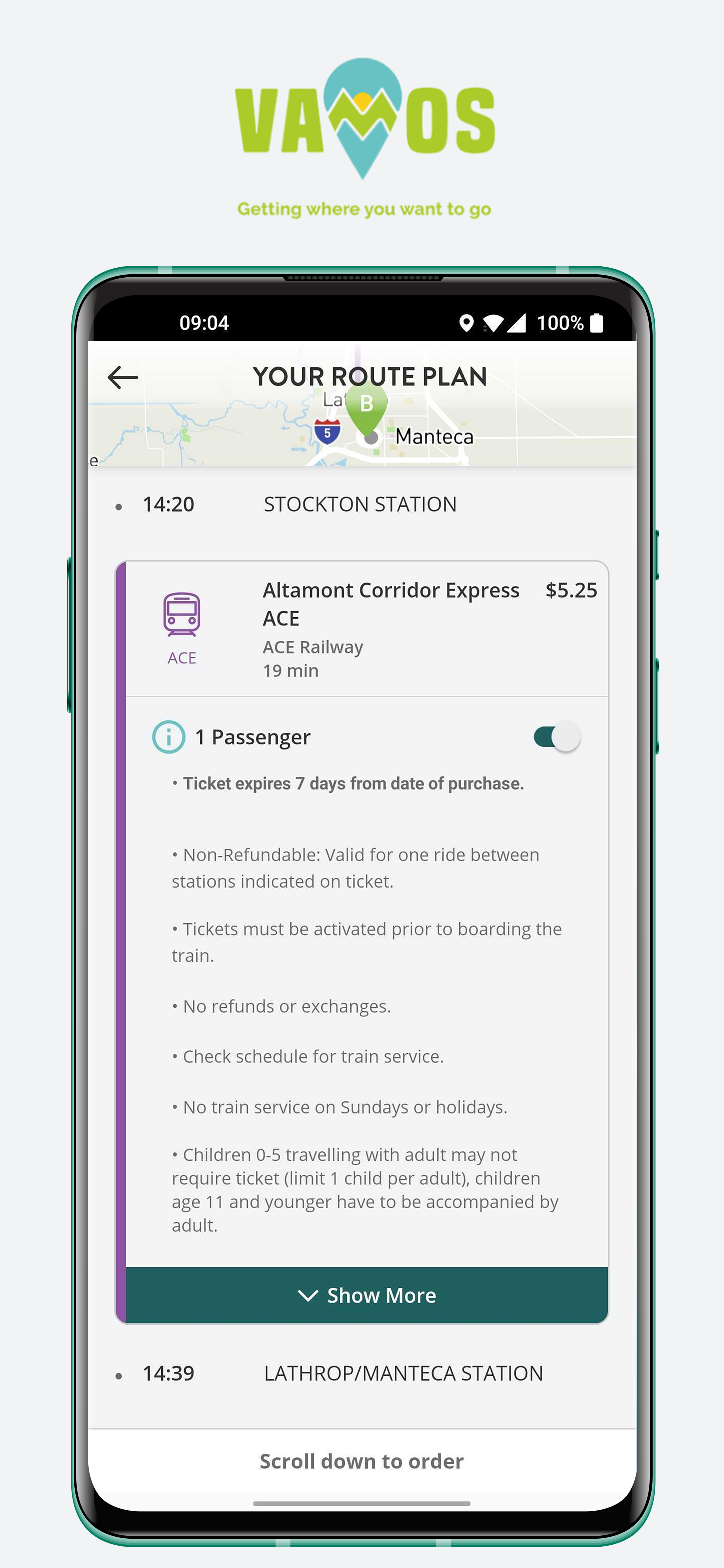 The Vamos Mobility app connects residents of California's Central Valley with affordable and sustainable ways to get you where you want to go and lets you purchase tickets using EZHub. Use the app to plan public transit trips within and between San Joaquin and Stanislaus counties. The app provides information and plans routes across all transit agencies in the two counties, including trips across multiple agencies and services, covering both fixed-route transit trips and connections to demand response services. Then use the fully integrated EZHub feature to purchase the public transit tickets you need. (Tickets are available for San Joaquin RTD, StanRTA, and transit in Escalon, Ripon, Manteca, Tracy, Lodi, and Turlock.) Vamos Mobility does not represent any government entity. It is funded through a grant through the San Joaquin Council of Governments (https://www.sjcog.org/559/Vamos-EZHub). It is authorized to sell transit tickets for San Joaquin RTD, StanRTA and transit in Escalon, Ripon, Manteca, Tracy, Lodi, and Turlock by the agencies (https://sanjoaquinrtd.com/app/). Miocar car sharing is now available in Vamos.