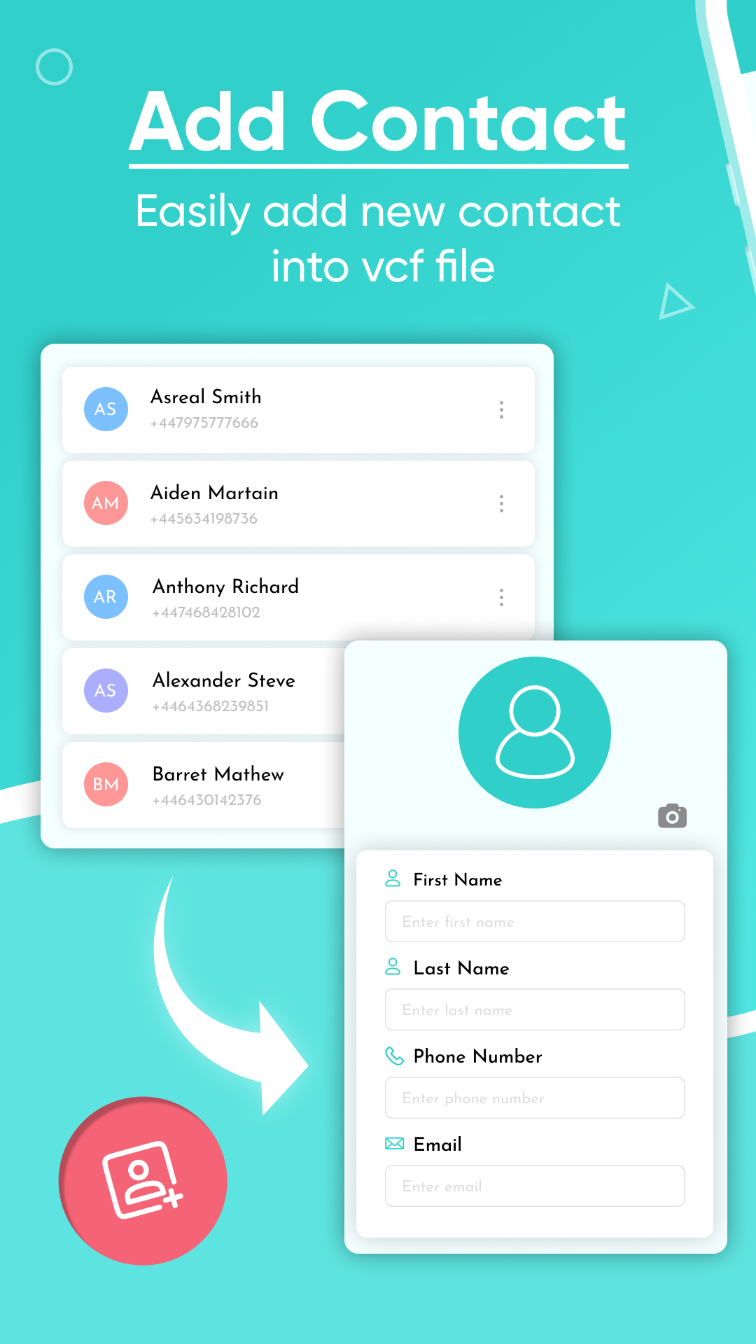 VCF file contact import allows the user to view VCF stored in the app. In addition, the contacts VCF viewer permits its users to create virtual contact files aka VCF. They are used for storing contact information and are considered the fastest means of sharing it. The VCF is easy to use and is supported by a large variety of applications, platforms, and devices. The UI of label contacts is easy to navigate and it required so professional support. The interface of the VCF file viewer includes four main features; VCF viewer, create VCF file, pick file, and saved VCF files. The VCF viewer feature of the contact reader lets the user view stored VCF in the device. The user can share the file to other platforms easily through view VCF file app. the create VCF feature of VCF view authorizes the user to easily create VCF using this app. using this feature, one can select the contacts individually or collectively and create their desired VCF. The pick file feature of VCF viewer allows the user to pick the files from the device. Finally, the saved VCF feature of reader contacts app displays the list of saved or created VCF using this app. Features of VCF File Viewer Contact Import 1. Vcard allows the user to view and create VCF files anywhere and anytime using smartphone. 2. The interface of the read vcard includes four main features; VCF viewer, create VCF file, pick file, and saved VCF files 3. The VCF viewer feature of vcards allows the user to view saved VCF in the device. Using this feature, a list of VCFs will be displayed to the user. They can determine the title of VCF, along with its size. The user can also share or delete the VCF directly from the app. 4. The create VCF feature permits the user to select the contacts individually as well as collectively to create the VCF. This feature will directly take the user to the list of contacts stored in the device. moreover, the user can search for any particular contact using search bar at the top. 5. The pick file feature lets the user pick any file from the device. after selecting, the user is required to select the check button at the bottom. In addition, the user can search for any particular file using search bar at the top. 6. The saved VCF feature authorizes the user to view the saved or created VCF using VCF File Viewer Contact Import. After selecting, a list of saved VCF will display on the screen along with its title and file size. Finally, the user can share as well as delete the file directly from the app without closing it. How to Use VCF File Viewer Contact Import 1. If the user wants to open and view the VCF files, they are required to click on the VCF viewer tab on the home screen. To share or delete the file, the user needs to click on the menu in front of each file. 2. If the user wants to create the VCF, they are required to click on the create VCF tab. After that, click on the required contact and select the create VCF tab below. After selecting, a backup will be created instantly. 3. The converted files can be found in the converted files tab. The user needs to select the converted pdf tab to view the pdf files. 4. Likewise, the user can pick any file using pick file feature. After selecting the pick file tab, the user can select any file from the device. 5. Finally, the saved VCF can easily be found in the recent files tab. ✪ Disclaimers 1. All copyrights reserved. 2. We have kept this app absolutely free by showing non-personalized ads. 3. The VCF File Viewer Contact Import is not keeping any sort of data without user permission neither it is saving any data secretly for itself. If you found any content in our app that violates copyrights than please inform us.