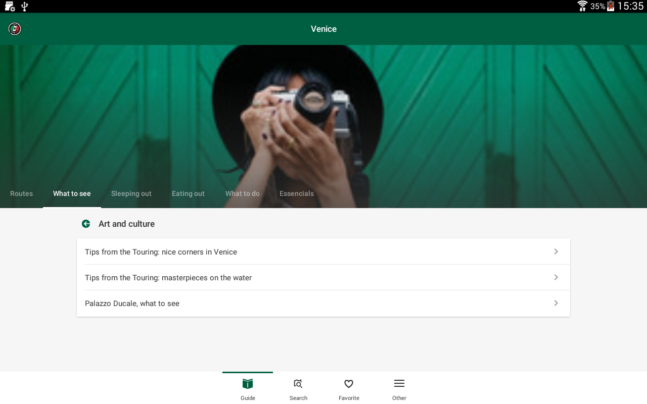 Venezia (Package Name: com.touringclub.android.venezia) is developed by Touring Servizi s.r.l. and the latest version of Venice Touring Guide 1.0.1 was updated on March 18, 2022. Venice Touring Guide is in the category of Travel & Local. You can check all apps from the developer of Venice Touring Guide. Currently this app is for free. This app can be downloaded on Android 6.0+ on APKFab or Google Play. All APK/XAPK files on APKFab.com are original and 100% safe with fast download.