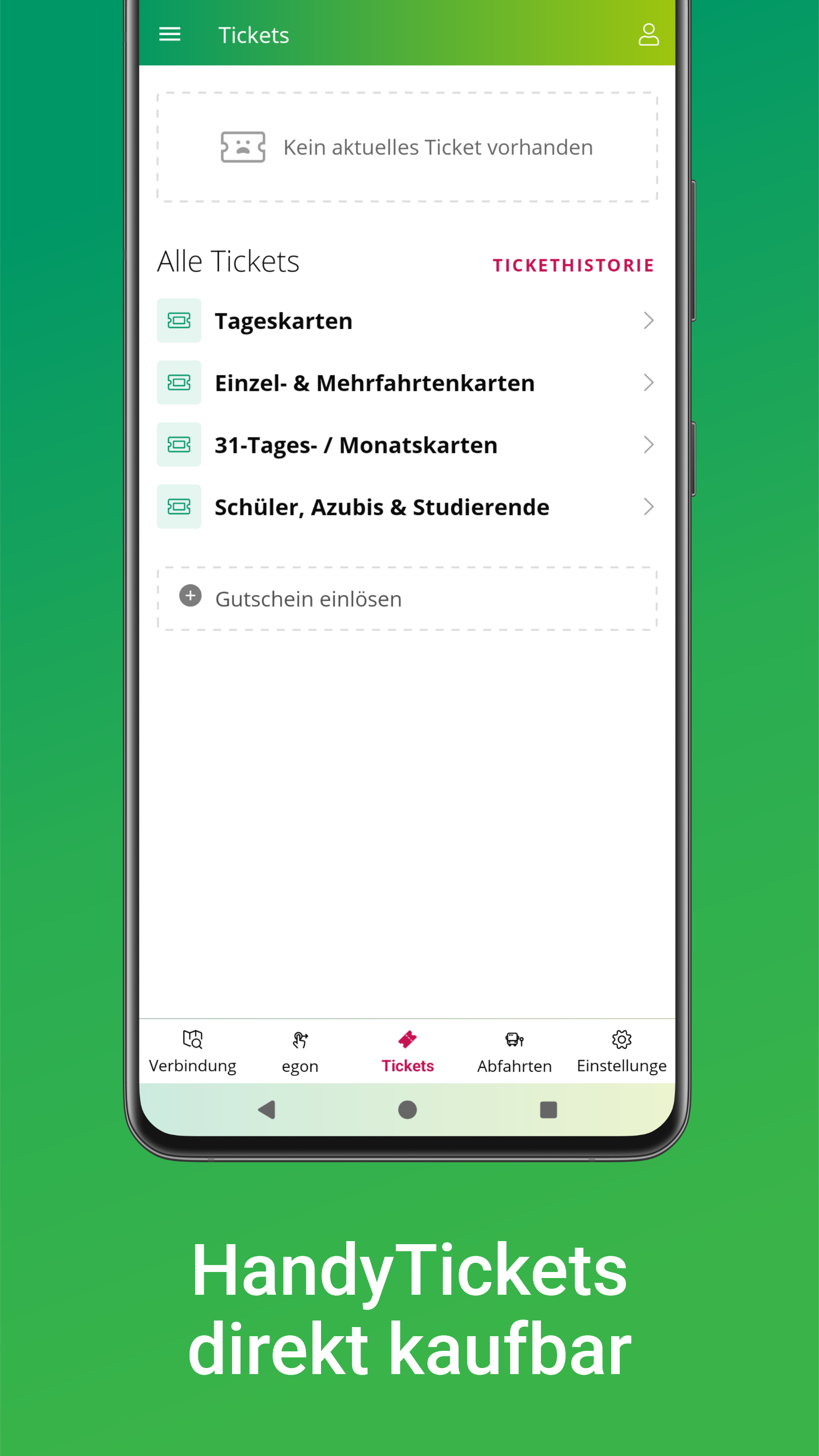 Internet connection and location tracking: An internet connection is required for full functionality and ticket purchase. The location tracking feature assists in automatically selecting nearby stops and is used for location tracking during an egon ride.