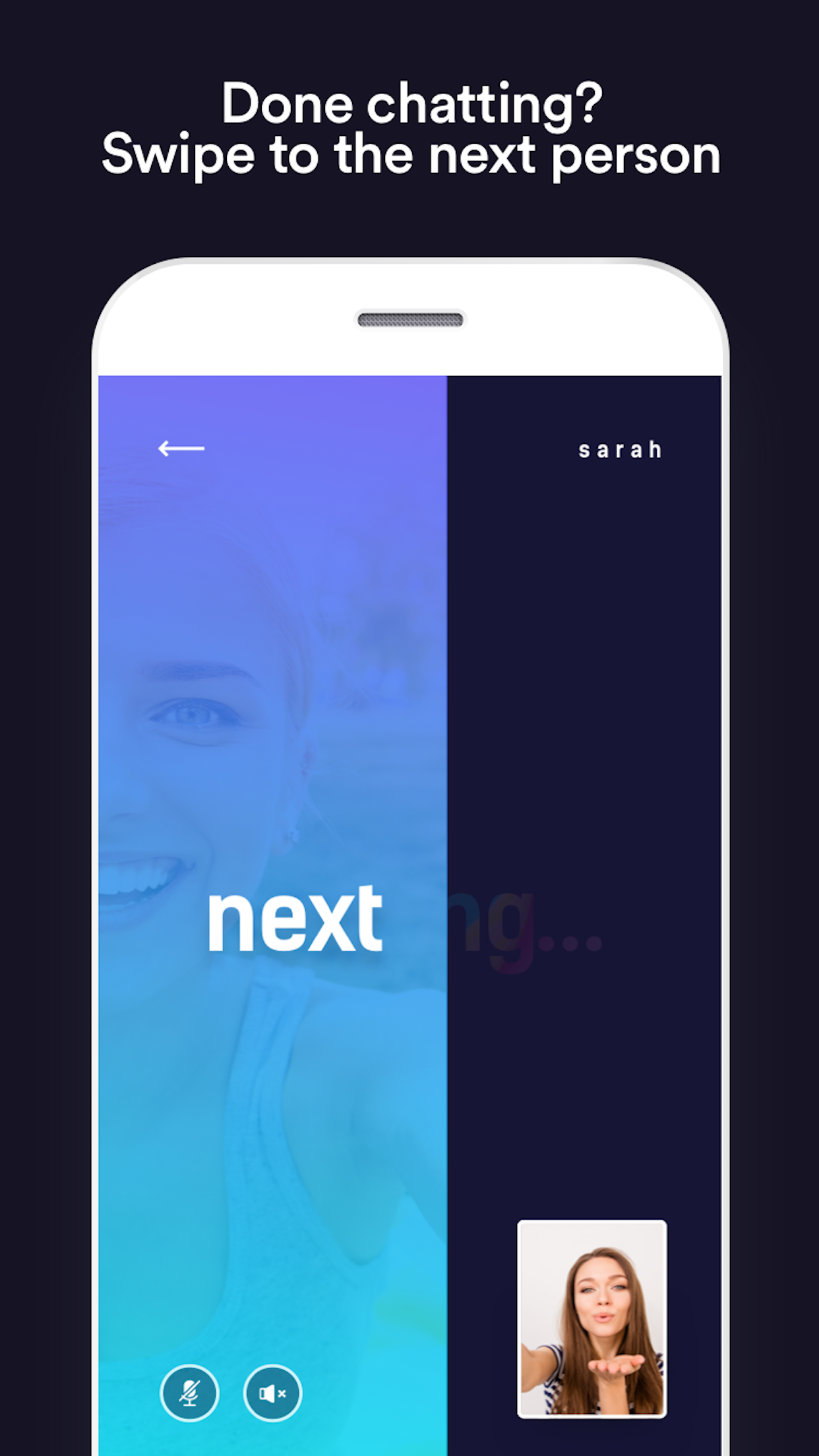 • Done chatting? Swipe to match with another person. It's that simple!