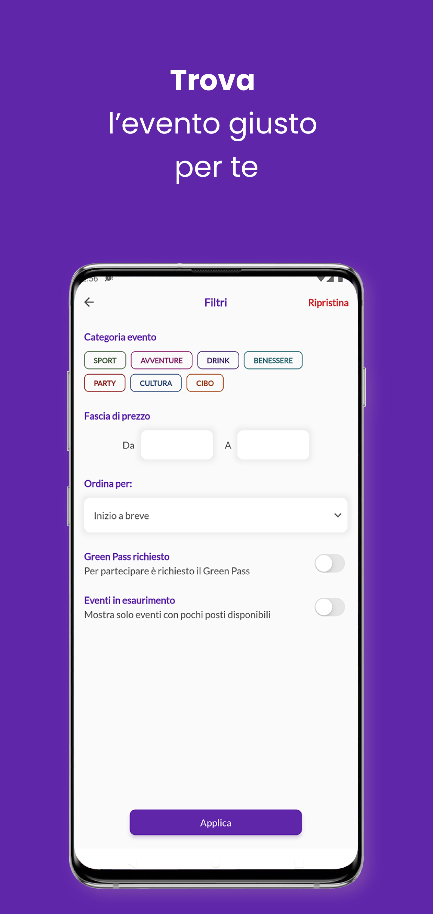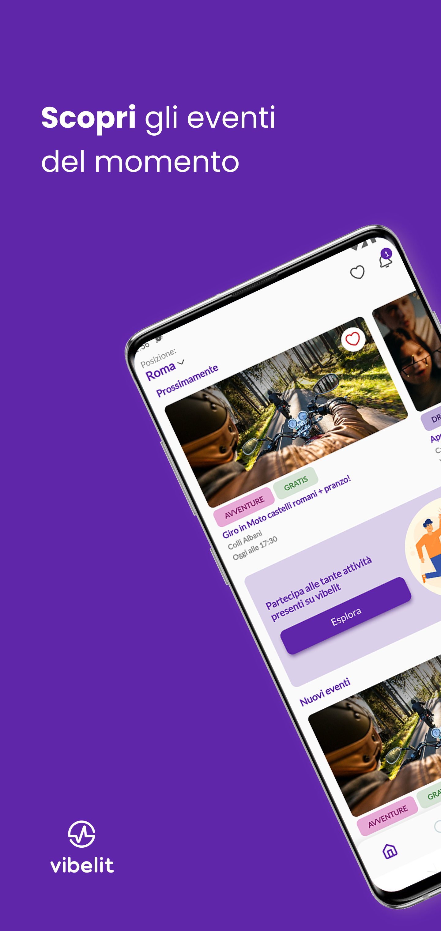 Get out of the routine and experience unique events! How many times have you ever wanted to organize something without being able to find a friend willing to accompany you? With vibelit the problem is solved once and for all: you will find many people with similar interests to yours, ready to organize many outings together. vibelit allows you to carry out your favorite activities in the company of new friends, sharing your passions and doing something different than usual! With vibelit you can organize aperitifs, dinners and drinks with friends, plan cultural visits, evenings at the disco, excursions and much, much more. You can participate in an event available in the app or organize one, choose the best formula in total autonomy! BECOME AN ORGANIZER With vibelit you don't have to wait for others to organize for you, you can become an organizer yourself! You decide whether to create free events, to meet new friends with the same passions as you, or paid events, to reconcile this desire with the possibility of obtaining a refund from each event. ORGANIZE IN A FEW CLICKS Just access the "create events" section, choose the type of event you want to create (if free or paid) and the category in which to enter the event: you can choose between sports, food, drinks, excursions, parties, culture or wellness . Next you will need to enter a small description of the activities that will take place and establish a number of participants and a physical place to meet. If the event is paid, you will be the one to choose how much to ask the participants. If you are not an experienced organizer, you can create paid events up to € 25, but you can also make a call with the vibelit team for the opportunity to become a verified organizer and organize events that require more complex management. TAKE PART IN EVENTS • Download the app • Create an account and log in • Configure your user profile by adding a short biography and a profile picture • Search among the many proposed events and… participate! You can use the "search events" section to filter the events according to the category that interests you most or the area where you are. Furthermore, you can save the events that you consider most interesting in your favorites and decide to participate later, you will find them again by going to the "saved events" section by clicking on the heart at the top right. Through the "contact the organizer" function you can request all the additional information you need to decide whether to participate or not. EVALUATE YOUR EVENTS Your feedback is very important to us, which is why we have included the possibility of giving a score from 1 to 5 judging the hospitality and punctuality of the organizer and the event as a whole. SAFETY Your safety comes first for us: you can report any participants who have adopted inappropriate behavior and we will immediately take action. OUR MISSION vibelit was born with the aim of becoming a point of reference in creating stable and lasting bonds over time between people with shared passions and interests. Our team is firmly convinced that the live event is an added value: the historical period we are experiencing has allowed us to recognize the importance of technology to continue to carry out our activities even at a distance, but it has also reminded us how much human contact is important in people's lives. This is precisely where the essence of vibelit is contained: reconciling the two in a single large project, while remaining consistent with our values: sharing, welcoming, respect, friendship. DOWNLOAD THE APP AND START HAVING FUN!