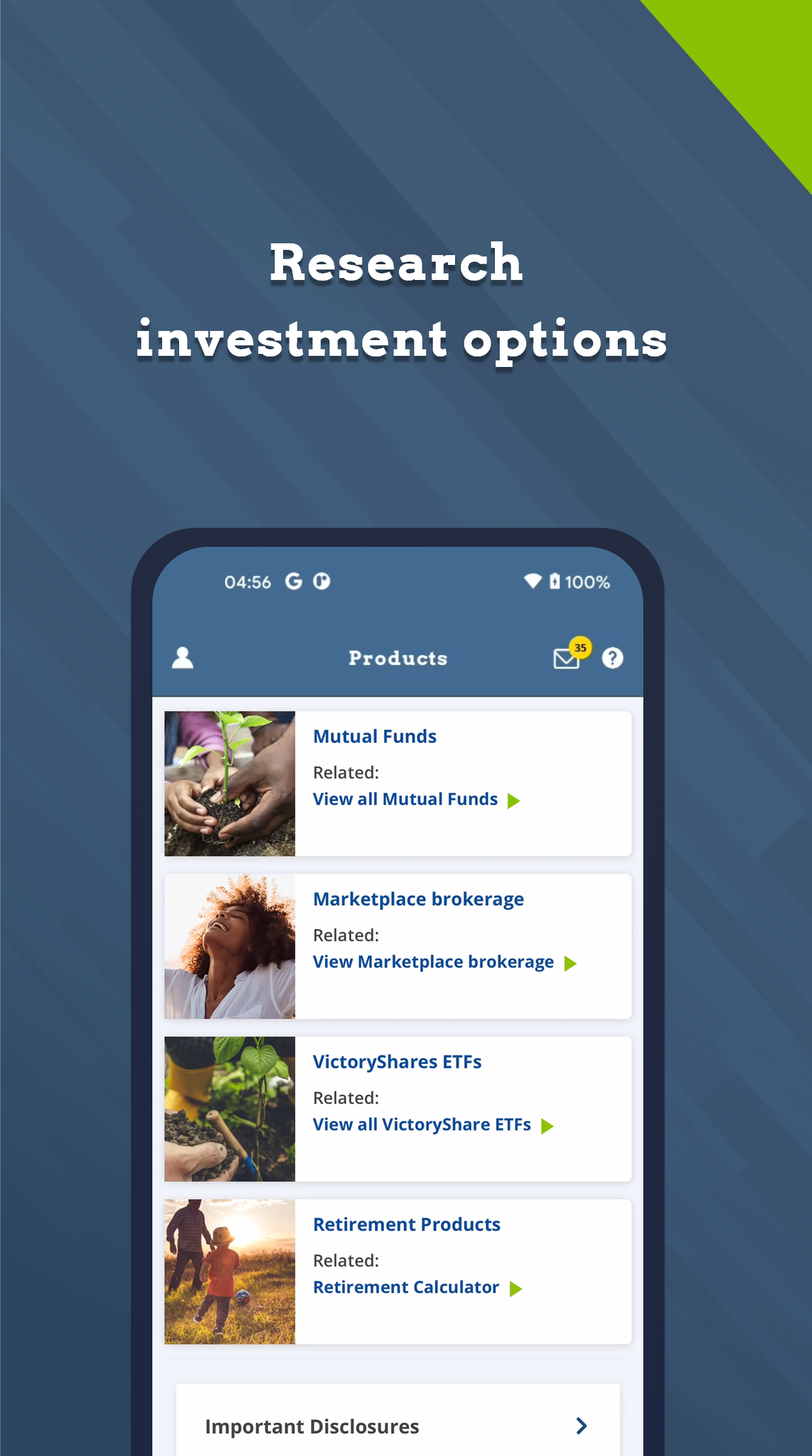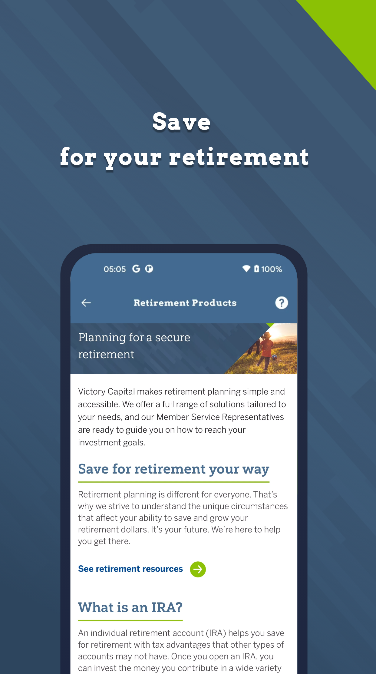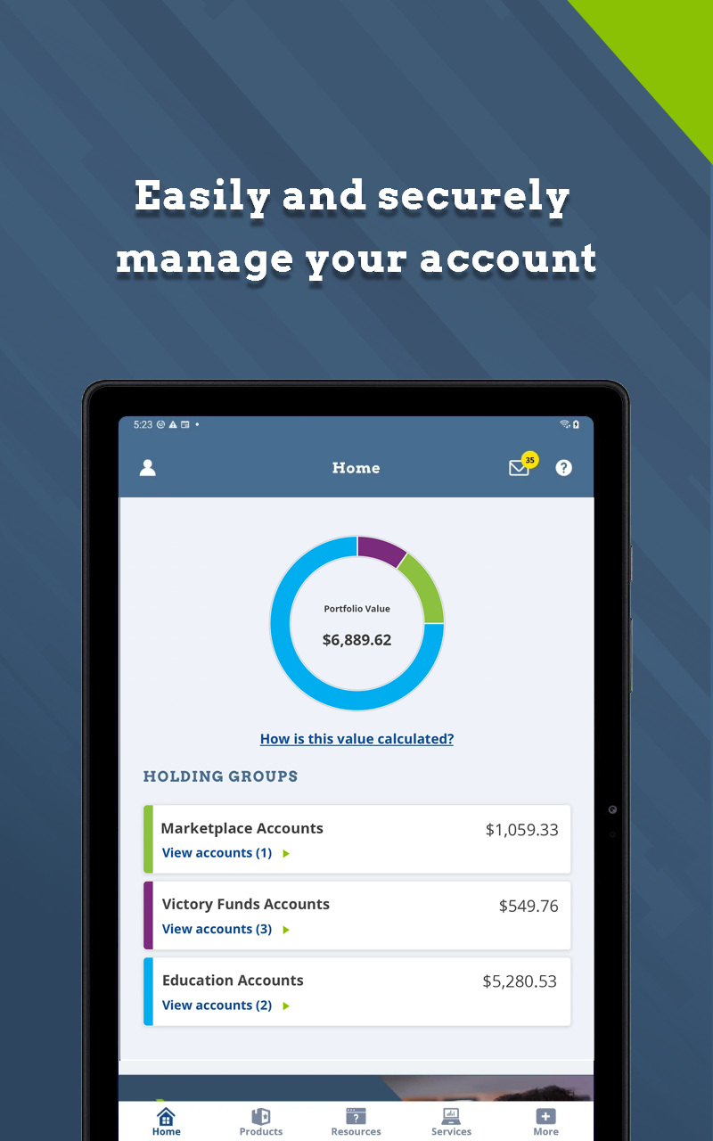 At Victory Capital, every investor journey, every financial situation, and every goal, regardless of size, is important to us. Choose from mutual funds, ETFs and a 529 Education Savings Plan managed by Victory Capital. Now, introducing Marketplace, our new brokerage platform, which lets you invest in Victory Capital products plus thousands of individual stocks and mutual funds and ETFs from other providers. Our mobile app makes it easy to manage your investments and make trades all in one place! Download the Victory Capital app to easily and securely: - Open and view accounts - Make trades - Research investment options - Get an investment recommendation - Track investment performance, account activity and balances - Retrieve documents - Access investment insights and easy-to-use planning tools Get started today by consolidating your investments with us, and you may earn an investment bonus. Plus, you’ll pay $0 commissions for most online trades*. Whether you are investing for personal life goals, like buying a home or a new car, your dream retirement lifestyle, supporting a loved one’s education, or even to build your family legacy, Victory Capital offers a variety of investment products that may be suitable for your financial objectives. *You may be charged a transaction fee for on-line trades of certain third-party mutual funds. Mutual funds and ETFs charge management fees and other expenses, including up-front sales charges. Victory Funds and the Victory Capital 529 Education Savings Plan (Plan) are distributed, and brokerage services provided, by Victory Capital Services, Inc. (VCS).