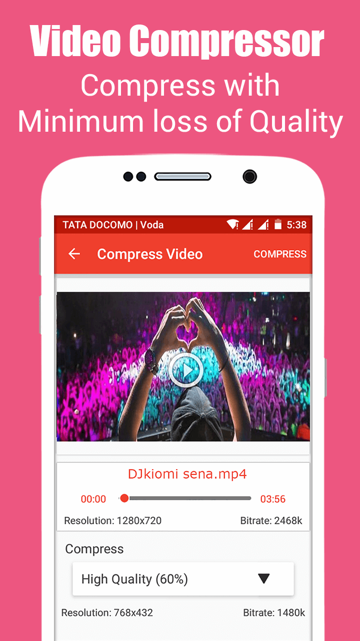 ✔ Compress video in different size and quality.