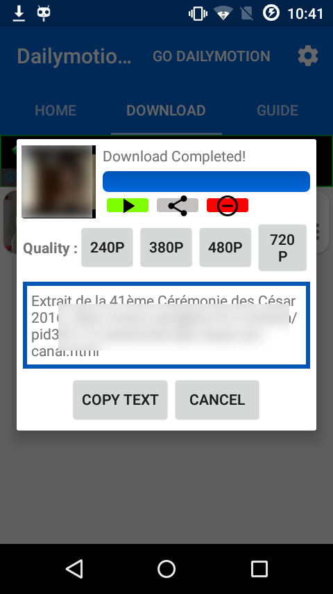 DISCLAIMER: This app uses the DailyMotion(tm) API and is not endorsed or certified by DailyMotion. All DailyMotion(tm) logos and trademarks displayed on this app are property of DailyMotion. We are not related to the official DailyMotion app and its makers in any way whatsoever.