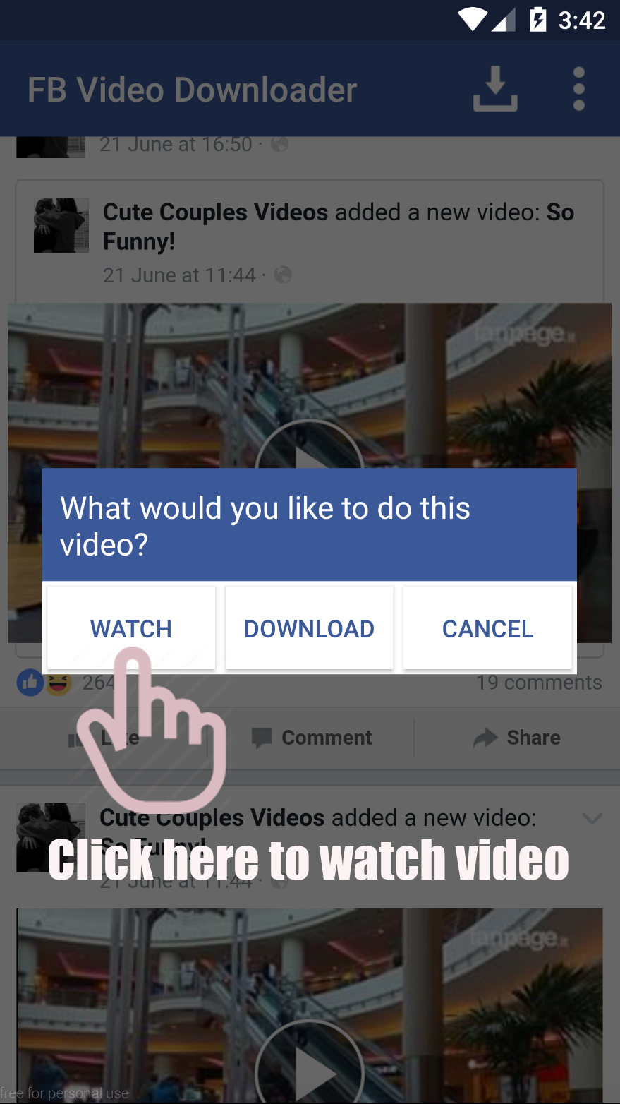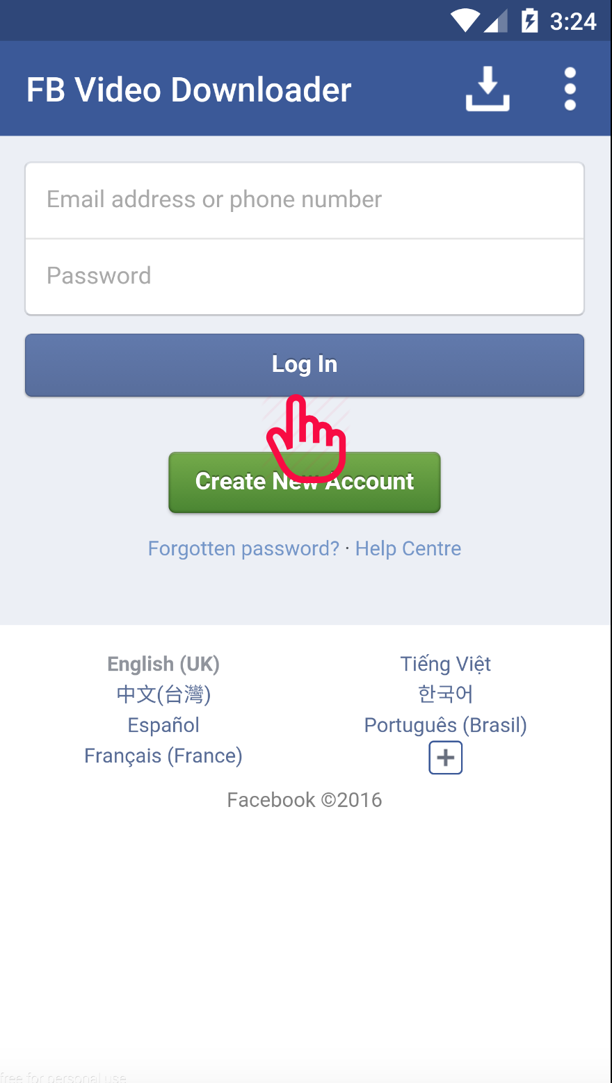 Video Downloader for Facebook is the best and easiest Video Downloader app to download and save videos from Facebook. Video Downloader for Facebook This video downloader free allows you to browse your news feed and your friends/pages walls to select the video you want to download and save them. In face video downloader you can watch it later and share it with your friends. FB Vid Downloader is best fbdownloader without any hustle and with simple steps of clicking and download its best video downloader for android. Install now it’s a fast video downloader. Must try now & download video from fb android. A best video downloader free FB Vid Downloader is the best video downloader for android even best video downloader in the world easiest Video Downloader app that allows you to download. Now download video from fb & save to your device to watch them offline and share them later with your friends. How to use: 1. Click on Browse Facebookfor mobile. 2. Login and browse your wall. 3. Click on Video you want to action ( watch or download ). 4. Click watch to watch video. 5. Click download to download video. Features: 1- Easy to use. 2- Safe & light weight. 3- Watch video and save them if you want. Install Video Downloader for Facebook and start downloading videos from Facebook now! Important Notes: - This app is NOT affiliated with or endorsed by the Facebook official network. - Any unauthorized re-uploading or downloading of contents and/or violations of Intellectual property rights is the sole responsibility of the user. - This app is intended to be used by people aged 13+ - This Video Downloader works for Facebook only.