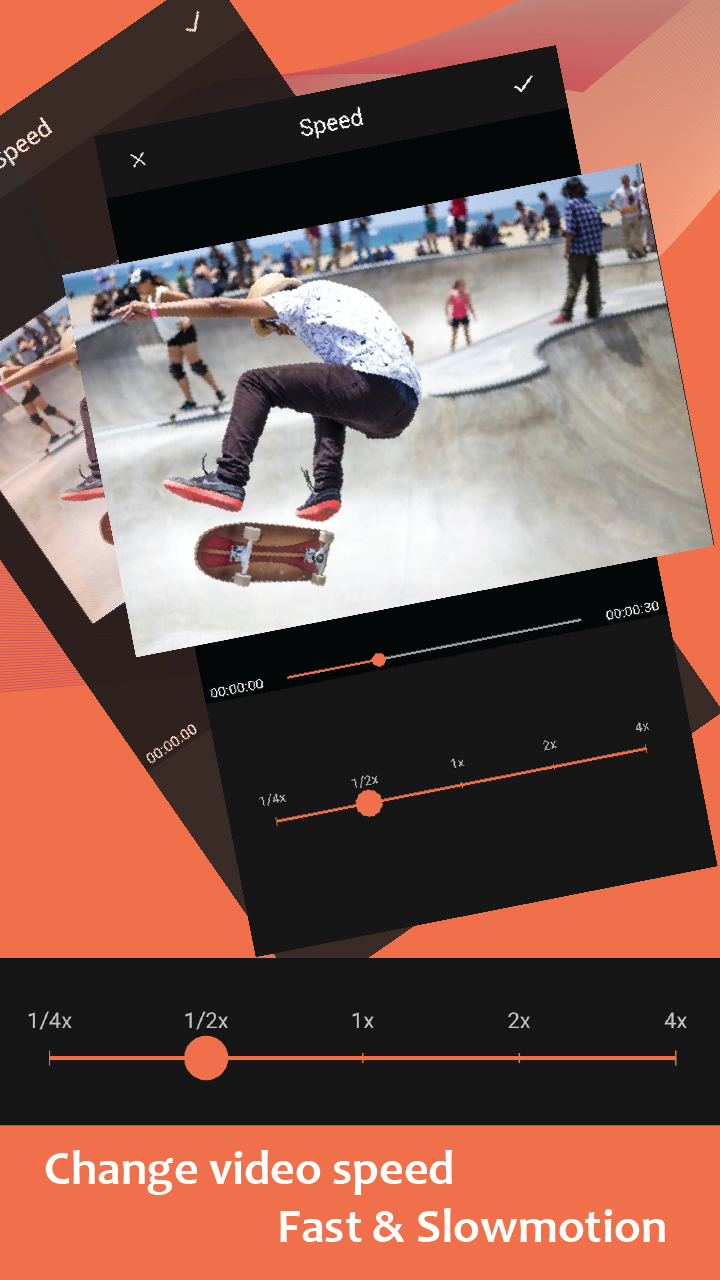 - Change video speed: make fast and slowmotion video