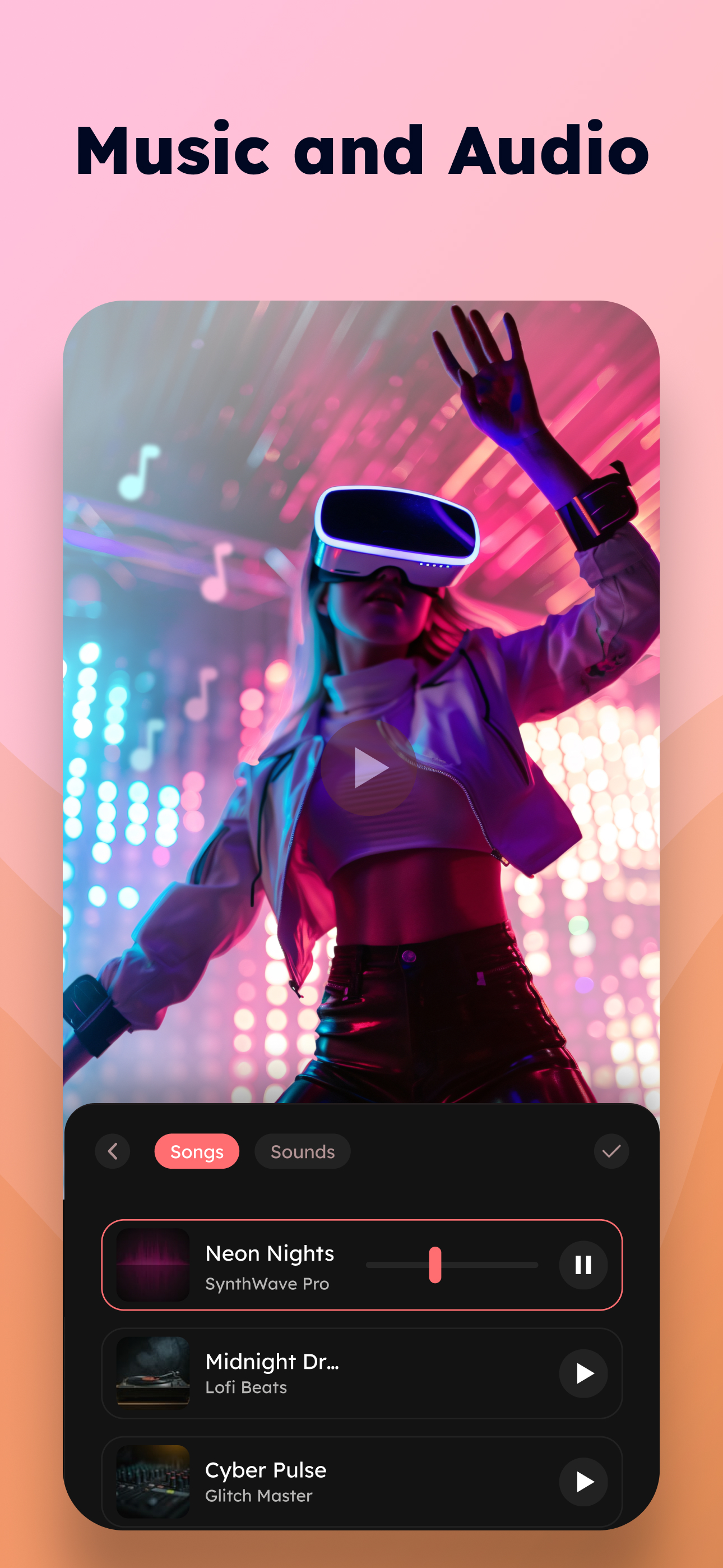 Apply cinematic video filters instantly — strobe light effects, color grading, and video lut presets that transform your footage. Explore pov perspectives and creative visual styles.