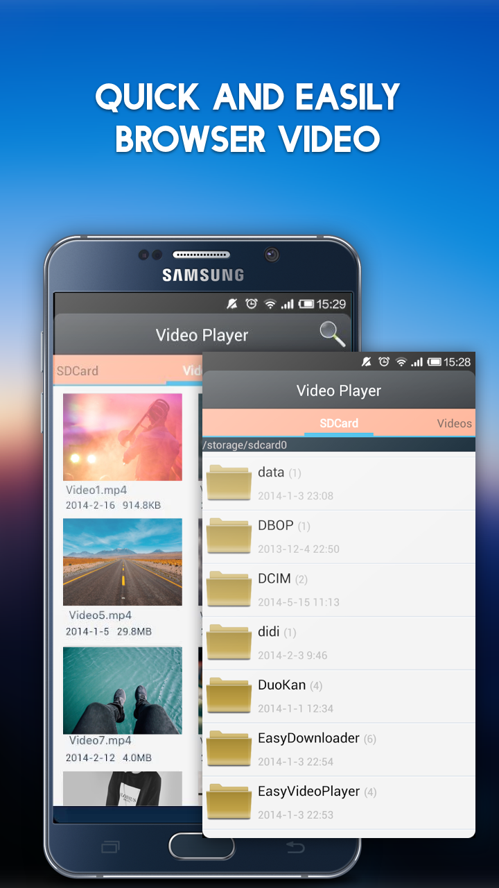 Free, safe video player for android, play all video files! Video Player uses hardware decoding technology to make video playing smoother. Its smart core technology automatically detects videos and audios in your SDCard, video player makes it much easier for you to enjoy smoother and better quality videos. Video Player is definitely your best partner when enjoying movie and music! Video Playe perfectly supports all popular video formats, including: mp4, avi, mkv, mov, mpe, mpg, etc. It also supported audio formats, including: mp3, wm, APE, awb, CAF, dts, flac, etc. Features about Video Player: - auto detects all mobile phone video and music files - supports all video and audio playback formats - supports multiple subtitle formats, automatic synchronization - using hardware decoding, take advantage of hardware acceleration - small memory, simple operation, quick start, smooth playback support - Flash formats video - flv, asf videos - Thumbnail displays of videos - HD video playing memory optimization - Playing gesture - Play History list - Continues play If you are pursuing a video player with the better user experience and user interface,Video Player will be your best choice. Enjoey it!