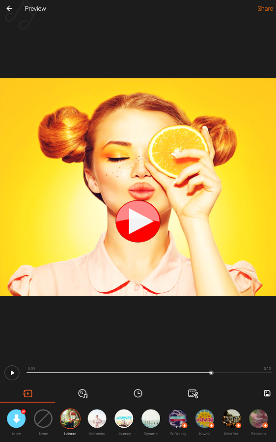 4. Slow motion (or fast motion): Adjust video speed to slow or fast.
