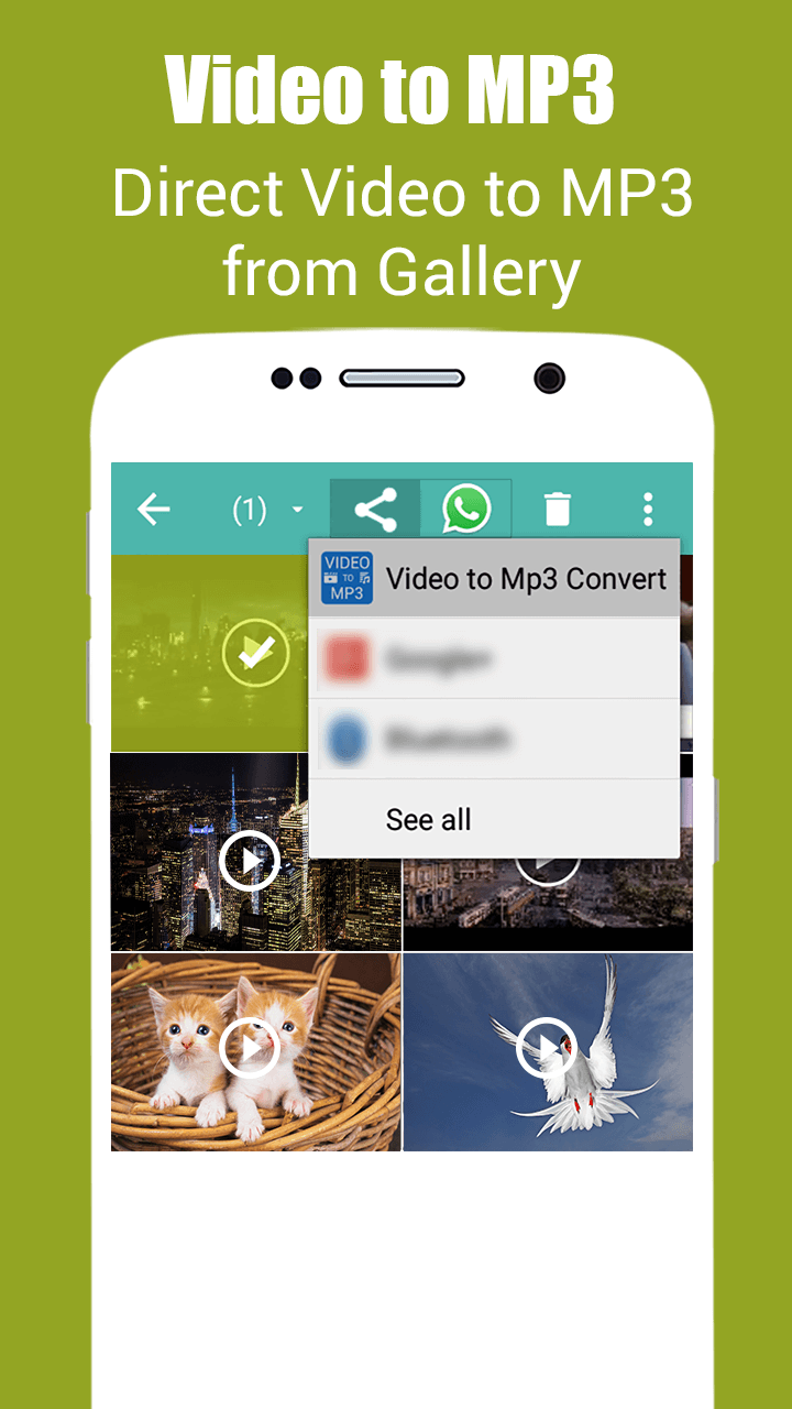 Easy to Use, Instantly Convert any Video to MP3 from Gallery or file manager by share video option.