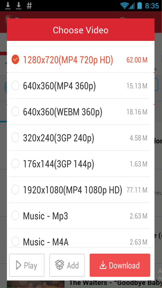 3. Choose video format (By clicking corner download’s button)