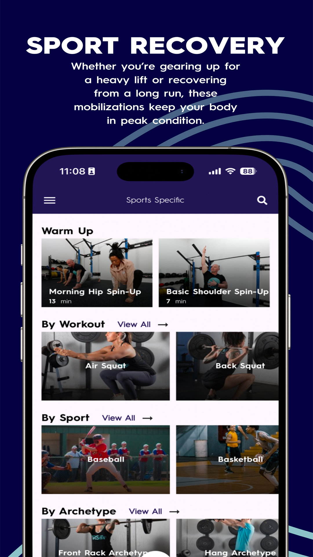 For athletes and active individuals, the app offers specialized ‘Sport-Specific’ videos designed for both pre- and post-activity. Whether you’re gearing up for a heavy lift, recovering from a long run, or prepping for your favorite sport, these guided mobilizations keep your body in peak condition.
