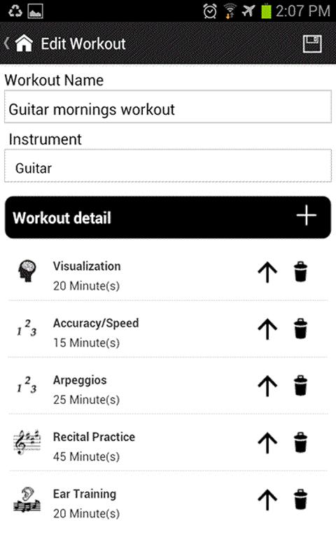 • Build your own workouts for a particular musical instrument and keep track of the time you use for them.