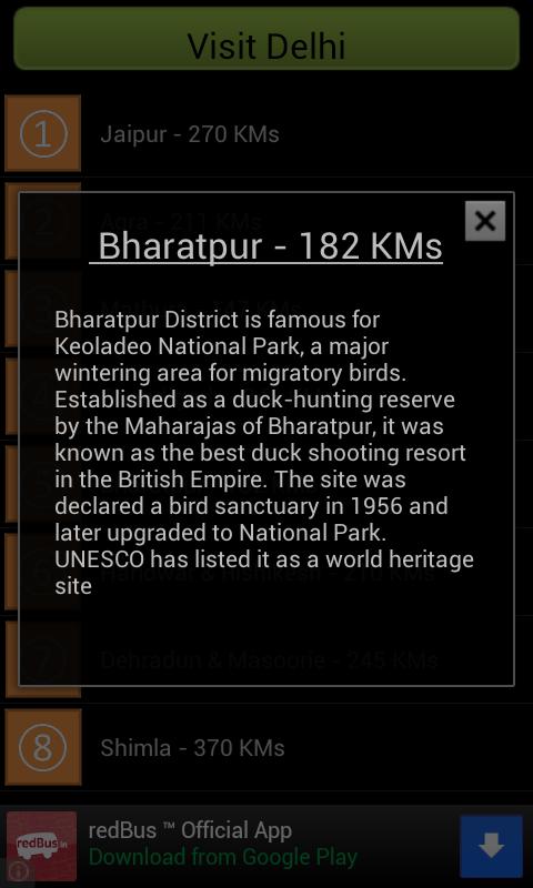 We have made this application as your perfect companion on your visit to Delhi . Visit Delhi is complete ready recknor about Delhi and comes handy when you are exploring Delhi. As it works offline, you can download and use it without any cost while you are enjoying your stay at Delhi.