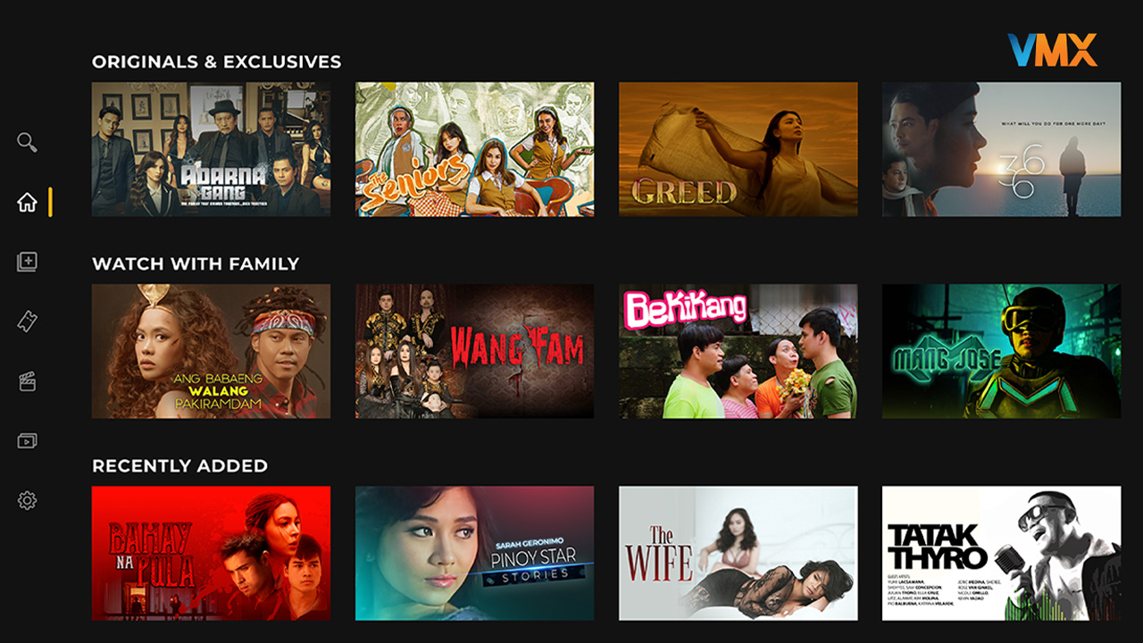 The leading Filipino content streaming service worldwide for Filiipino produced movies, TV series, concerts and special interest titles. Available in over 80 countires on your phone, laptops and home devices. Only from VMX Here's what you can do with VMX: 1. Stream all you want. Browse your favorite Pinoy content and stream them straight on your device. 2. Add titles to your Watchlist and binge on. 3. Save your data. Download Pinoy titles on your device and watch them offline anytime, anywhere. 4. Watch new titles and proudly Filipino made Originals, exclusive on VMX.